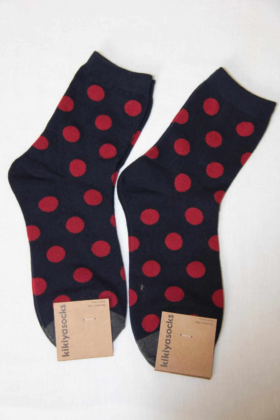 Стильные тёмно-синие носки в вишнёвый горох. Это просто бомба!! Наденьте классический брючный костюм и такие носки сделают ваш образ модным и незабываемым.
