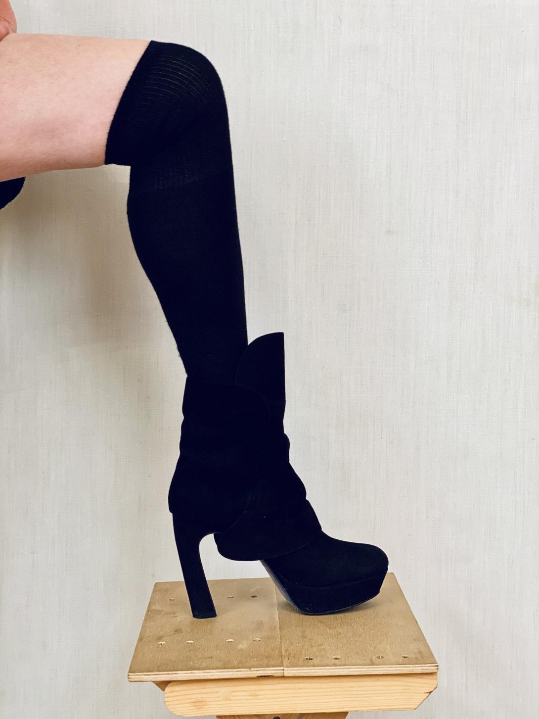Дорогая Итальянская обувь это- Шикарные ботильоны на высоком каблуке большого размера от Ит.бренда Manila Grace. Обувь из натуральной замши 41 размера для крутых девушек!!.Цвет черный.Подошва ярко-синего цвета очень эффектно смотрится..Высота каблука 12 см, платформа высотой 3 см.Верх-замша, подошва-кожа голубого цвета.