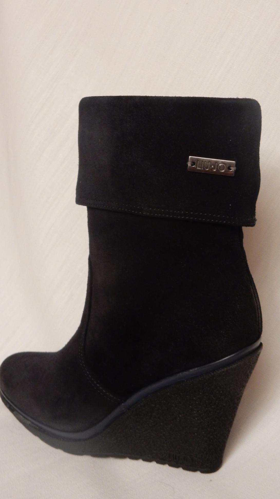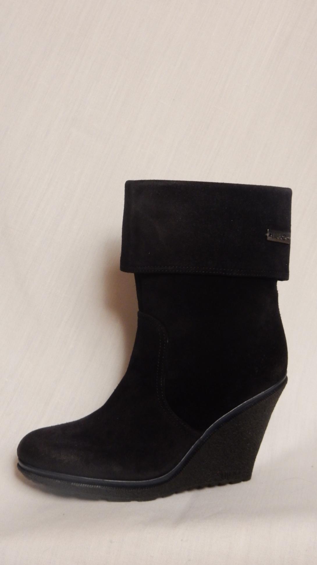 Верх-замша,цвет-темносиний.Высота каблука 9 см.