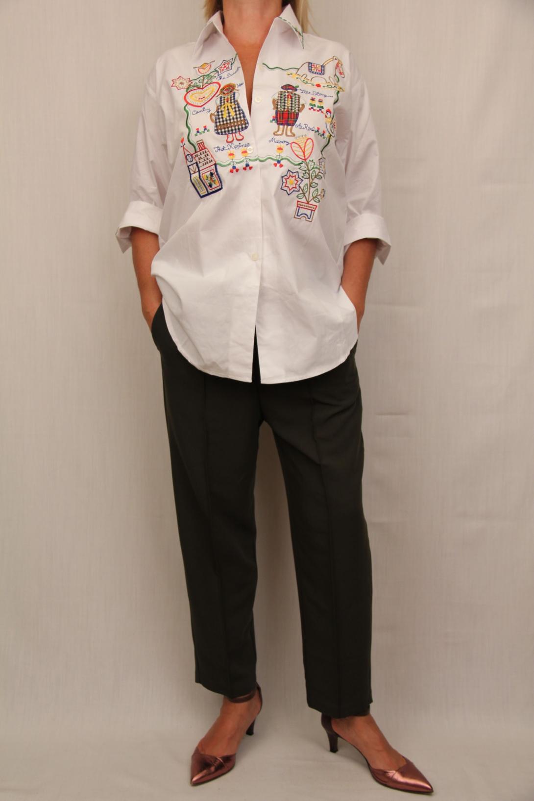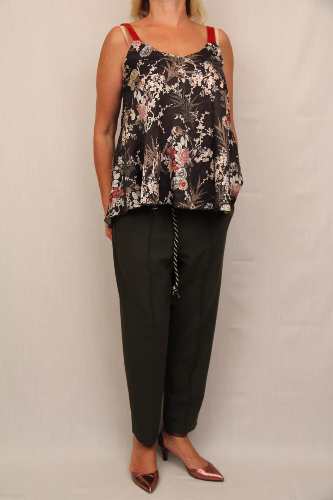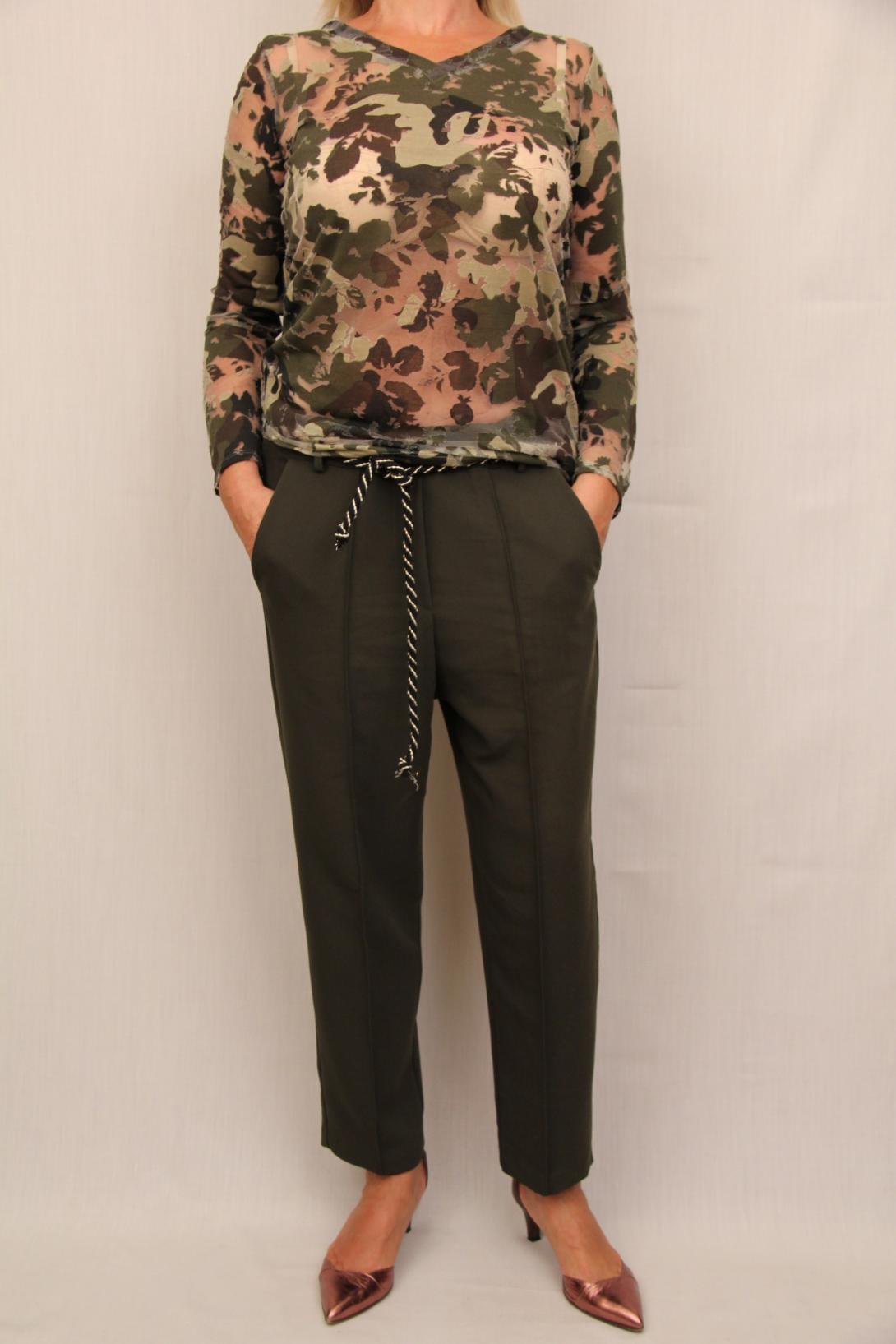 Модные брюки со стрелками и пояском в виде верёвки с люрексом.Брюки напоминают слегка мужские брюки.В этом сезоне осень-зима 2018г.очень актуальны рубашки со спущеным плечём напоминающие мужские.
