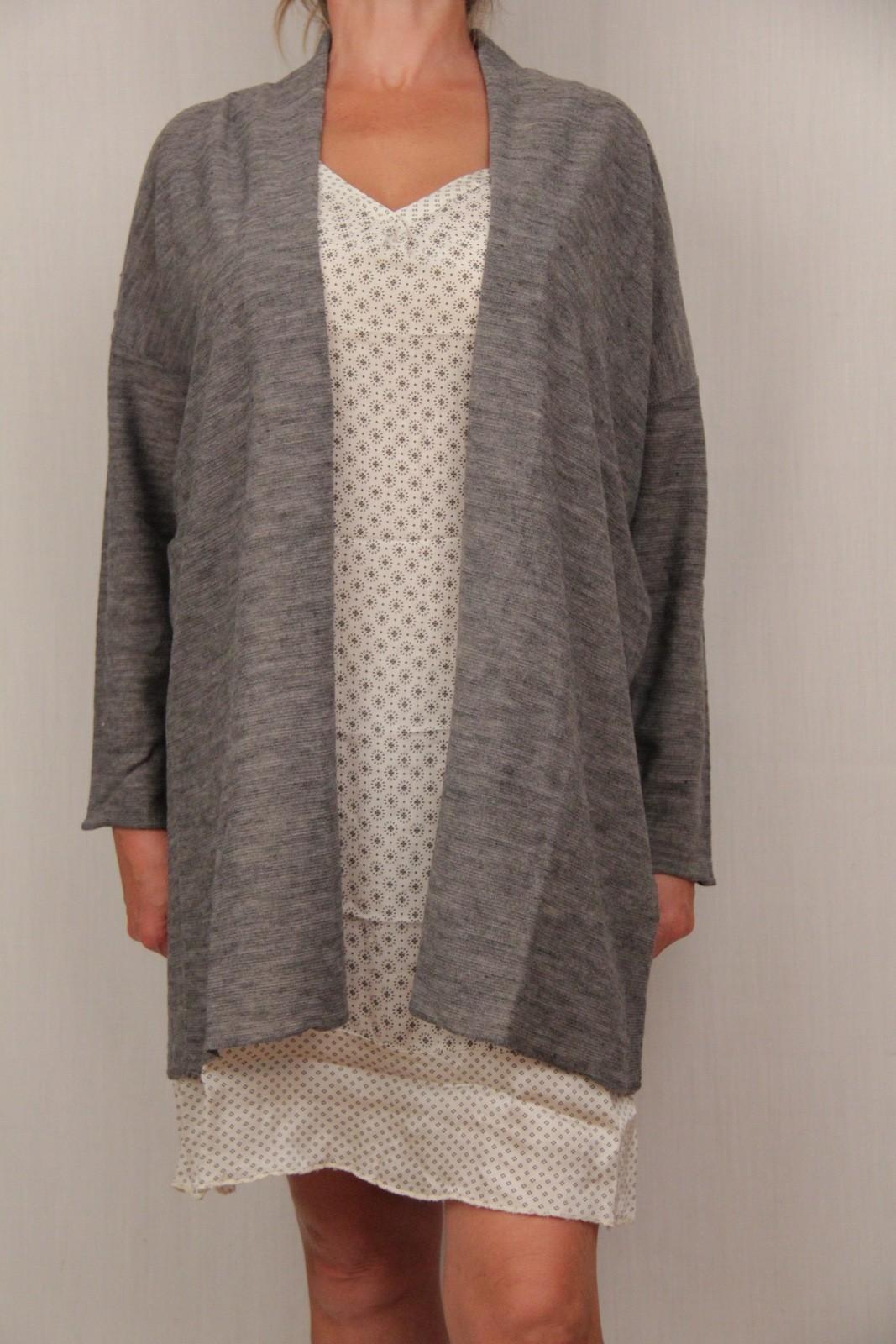 Классический трикотажный кардиган хорошего качества производство Италия.Силует свободный.Цвет слоновая кость и серый.