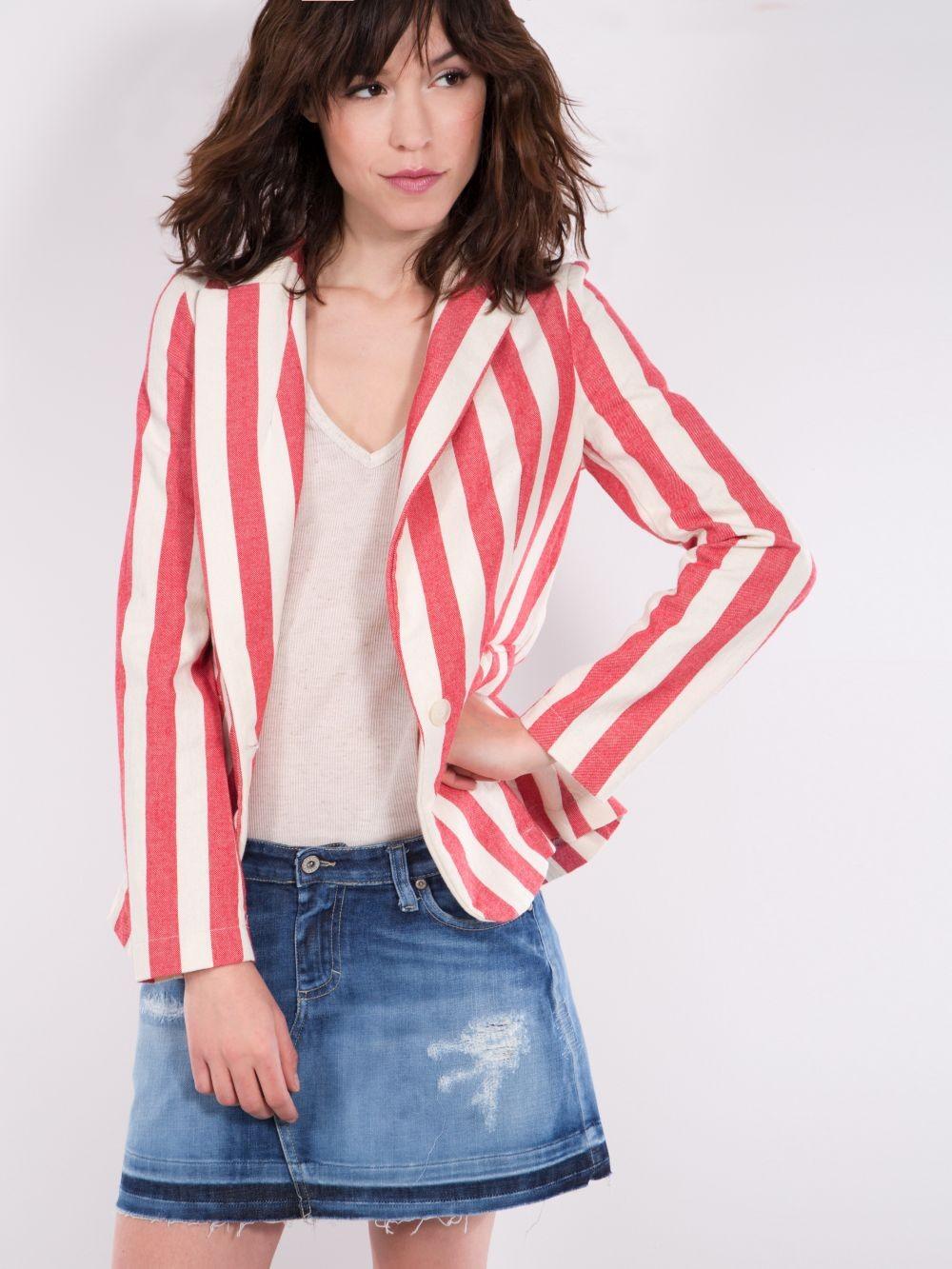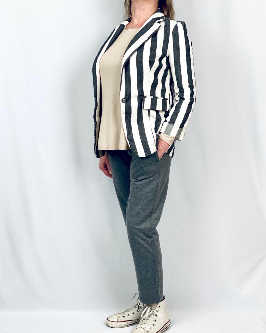 Жакет в широкую вертикальную полоску. вытягивает фигуру. Жакет производства Италия бред PLEASE один из самых востребовнных среди итальянцев благодаря качеству и отличной посадкой вещей.