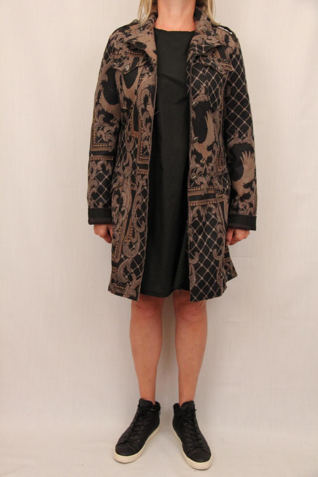 Модное итальянское пальто коллекции осень 2024, смотрится как бы золотисто -гобеленовым, на самом деле это пальто из плотной напоминающий гидрокостюм материала, т.е будет тепло, комфортно и очень стильно.