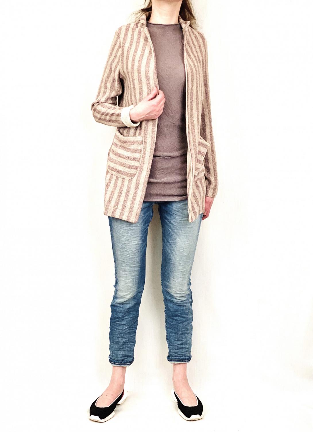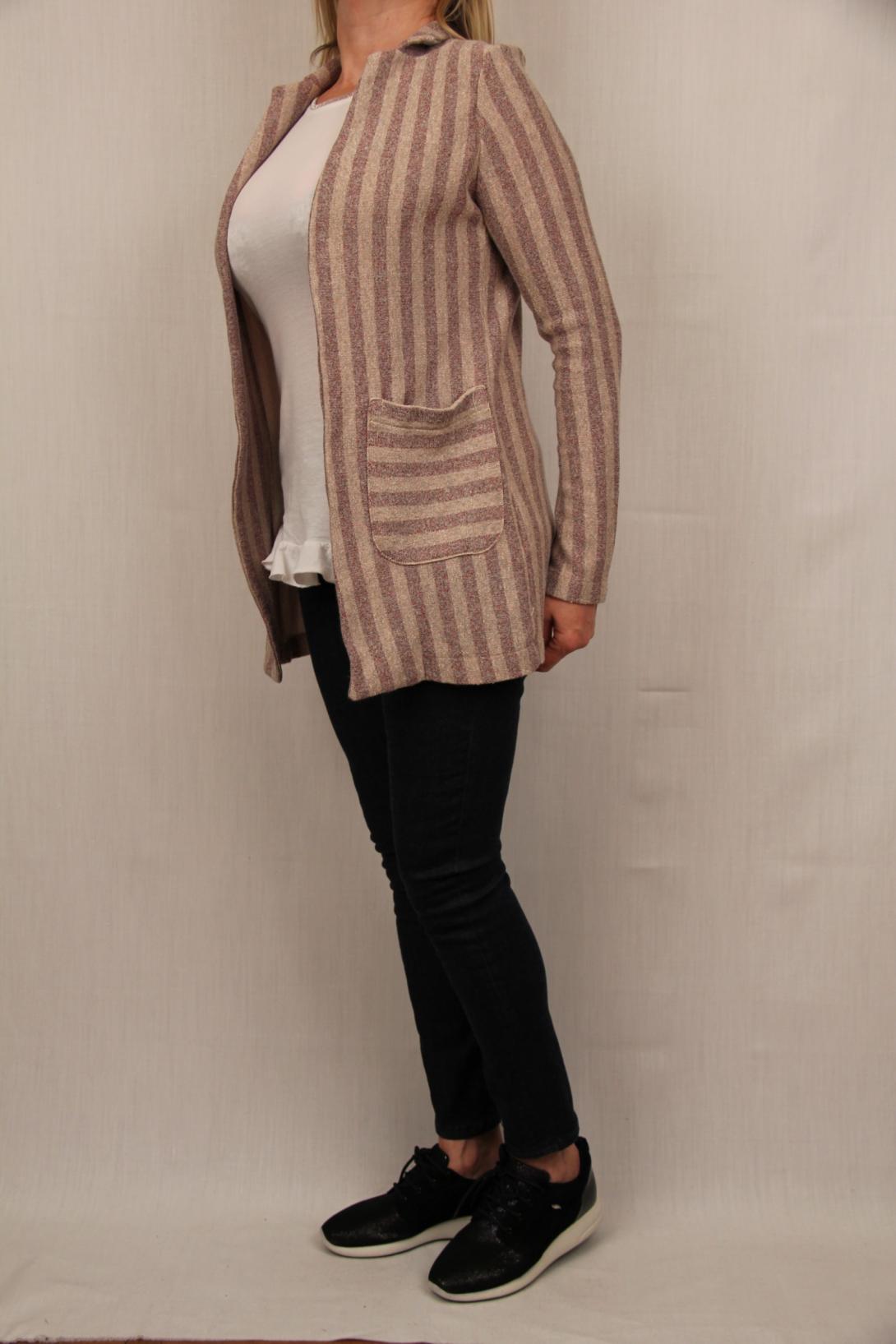 Легкий жакетик в продольную полоску с добавлением люрекса розового цвета от итальянского бренда Please. Для полного комплекта можно купить топ.