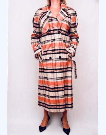 Стильный двубортный плащ с объёмным верхом. Рукав реглан, клетка. Бренд SOALLURE это высокое качество одежды.