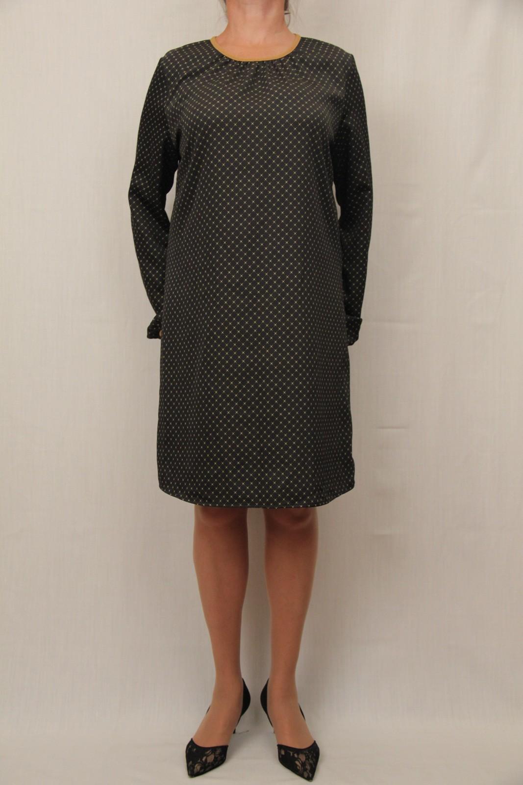 Это платье пр-во Италия подходит для повседневной носки и для работы в офисе. Платье имеет слегка свободный крой,что позволит скрыть любые нюансы фигуры. Платье прекрасно комплектуется с жилетом без рукава.