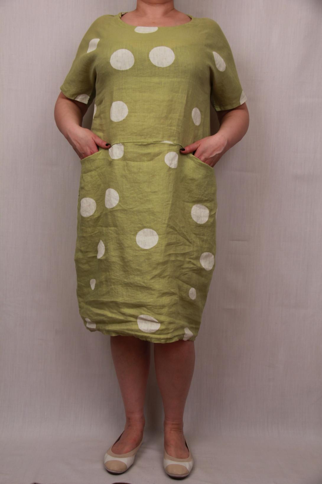 Платье прямое в жизнерадостных тонах подойдёт для ежедневной носки.Горох очень актуален в этом летнем сезоне.Платье из льна большого размера купить со скидкой.
