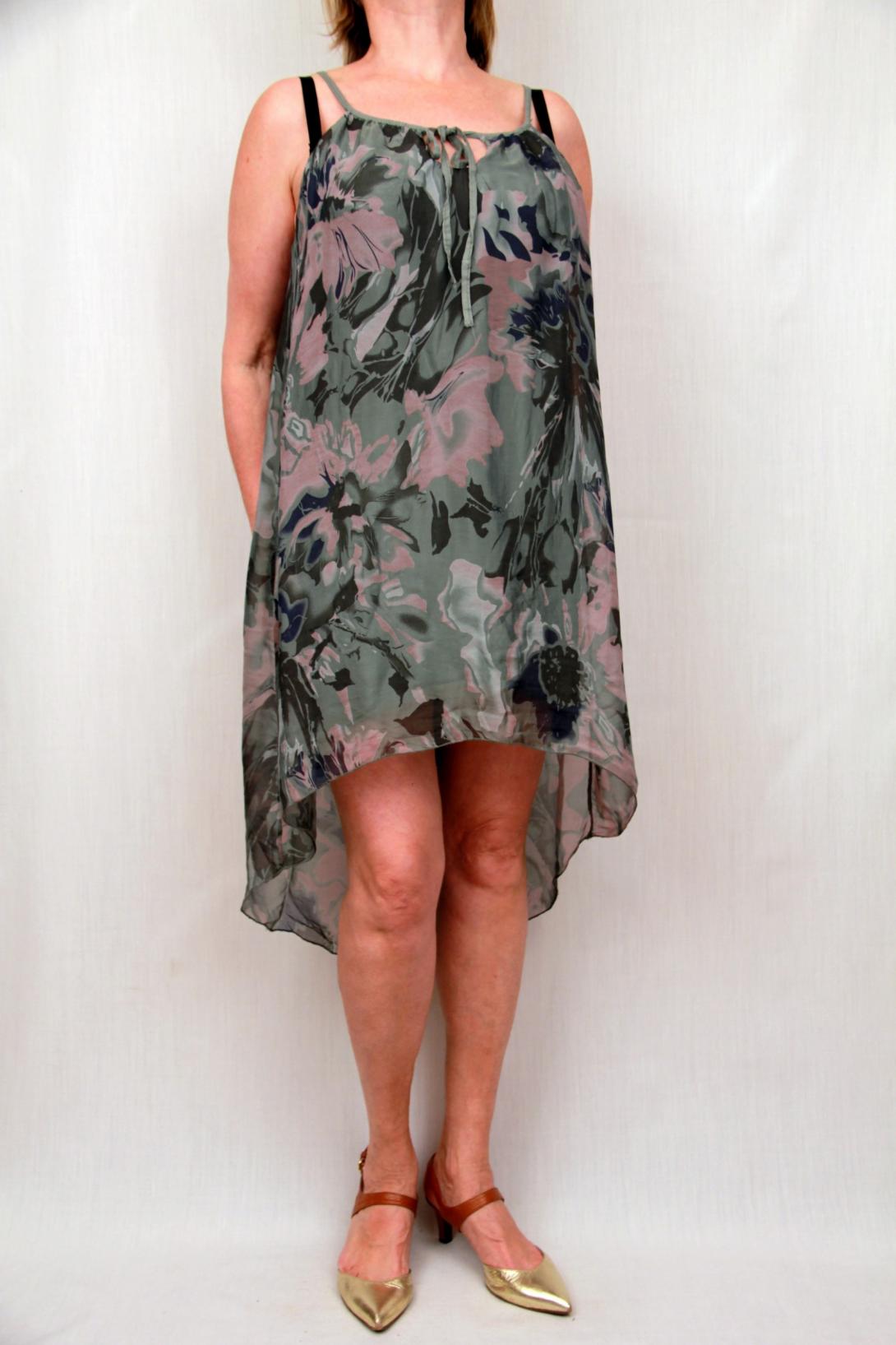 Шелковый короткий сарафан ,красивая цветовая гамма. В таком сарафане приятно бродить по берегу моря. Купить со скидкой в интернет магазине до -50%.