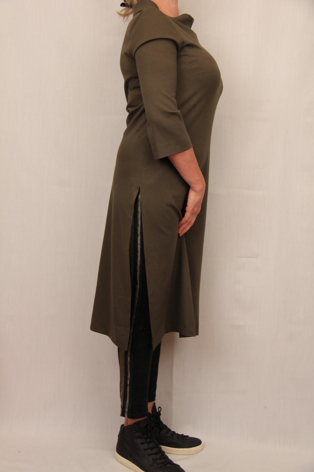 Платье из плотного трикотажа из коллекции осень-зима бренд Imperial. Платье строгое но имеет изюминку, глубокие разрезы по бокам, которые удлиняют ваши ноги. Платье лучше носить с очень плотными колготами, легинсами, узкими брюками или джинсами.