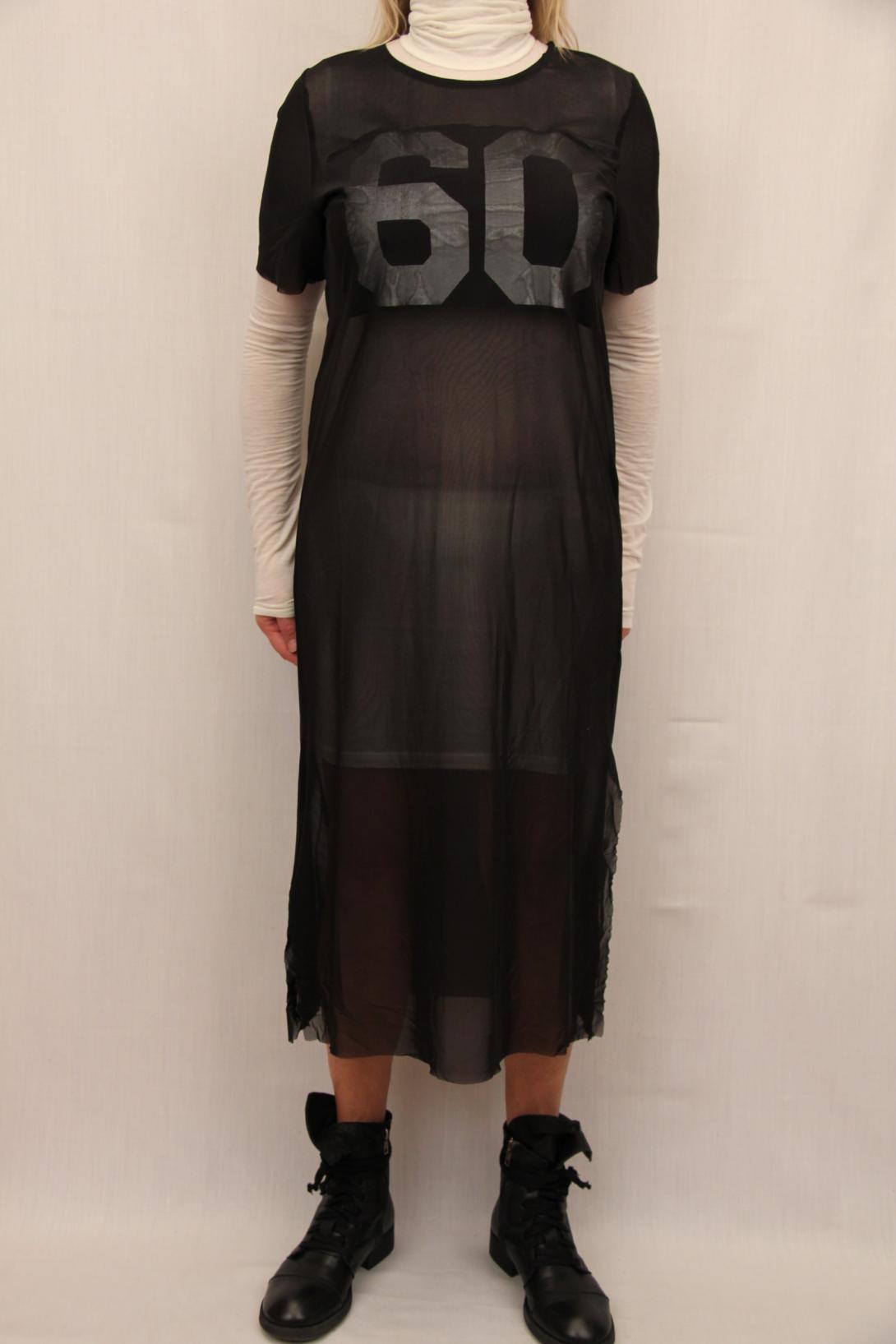 Стильное длинное платье-сетка с принтом- номером. Платье можно носить с брюками или легинсами.