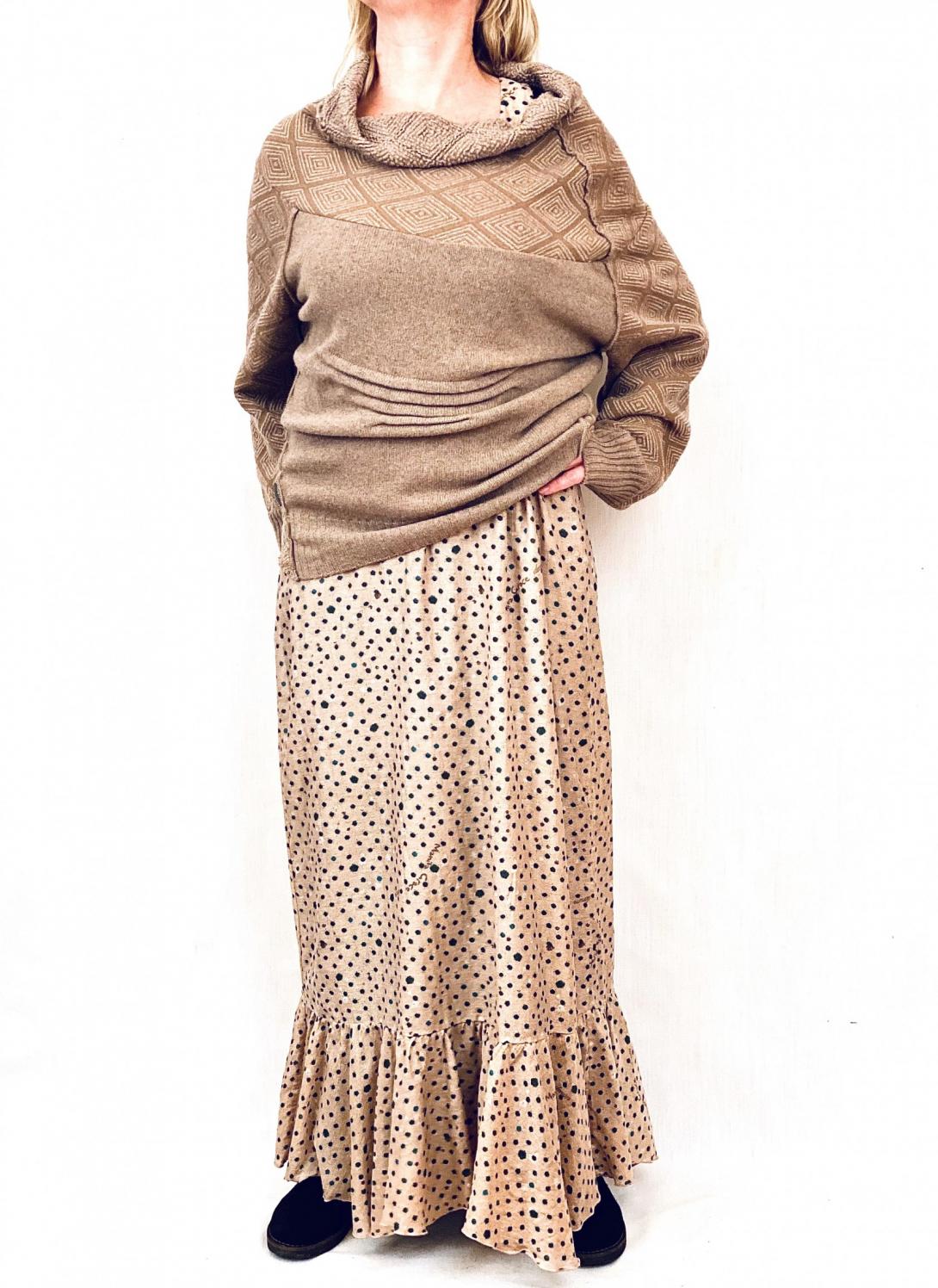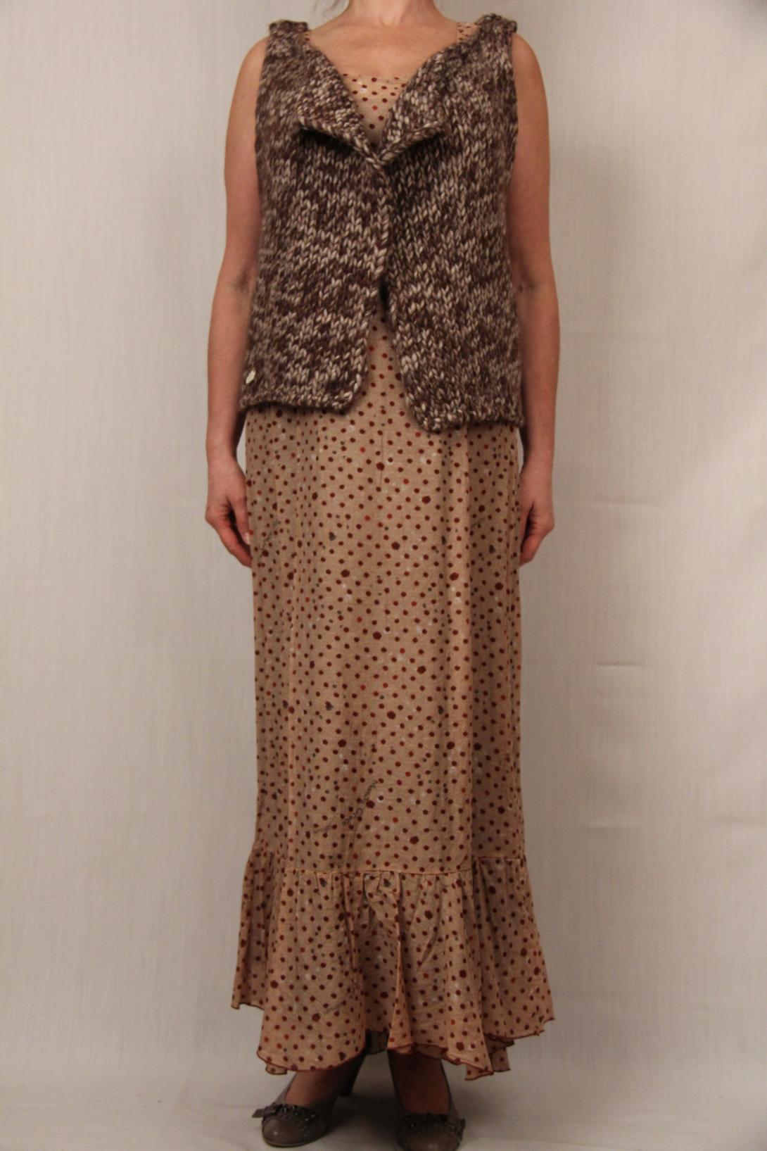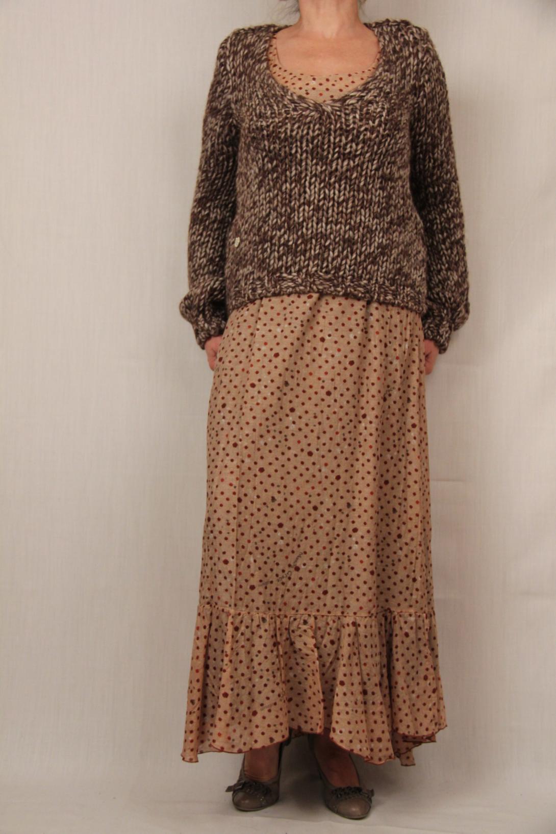 Длинное платье в пол с бордовым горошком.К этому платью есть в тон прекрасный шарф. Смотрите в разделе ШАРФЫ!Платье комплектуется с тёплым платьем-туникой с имитацией ручной вязки. Получается стильный и тёплый комплект.Пр-во Италия.