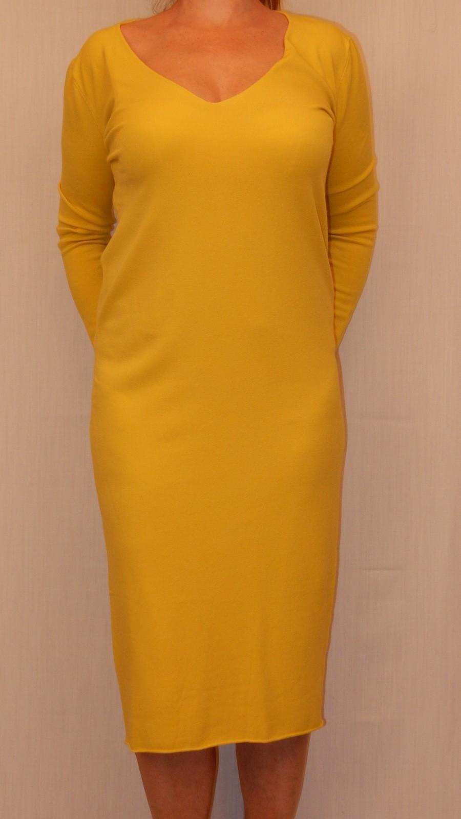 Элегантное трикотажное платье ниже колена только в жёлтом цвете.