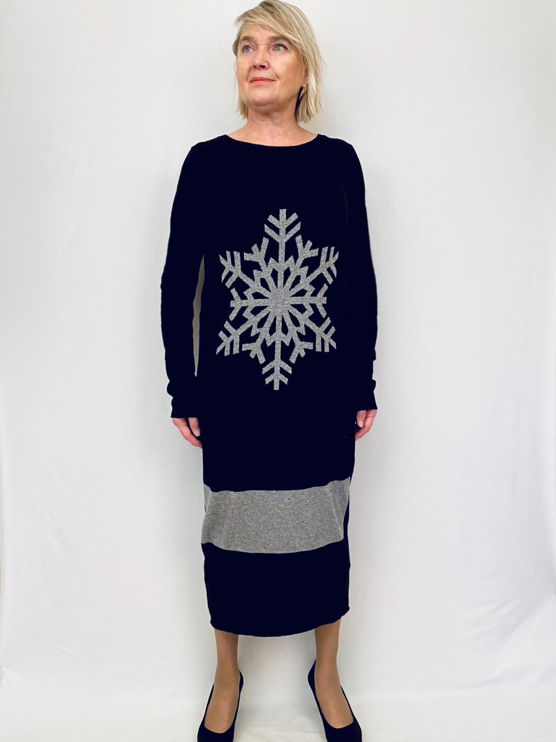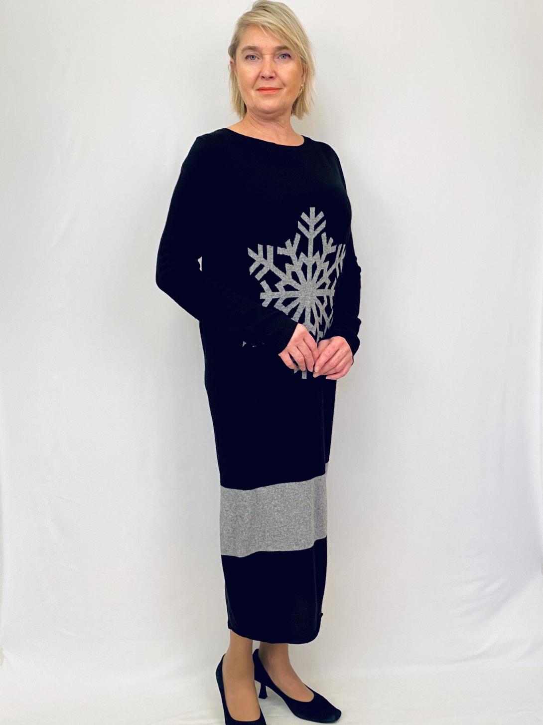 Теплое и комфортное итальянское платье в чёрном цвете . Платье трикотажное миди с оригинальным принтом в виде снежинки от Northland.