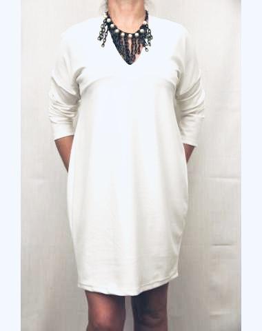 Стильное платье белого цвета от Итальянского бренда PLEASE. Платье в стиле оверсайз,т.е немного свободного кроя.