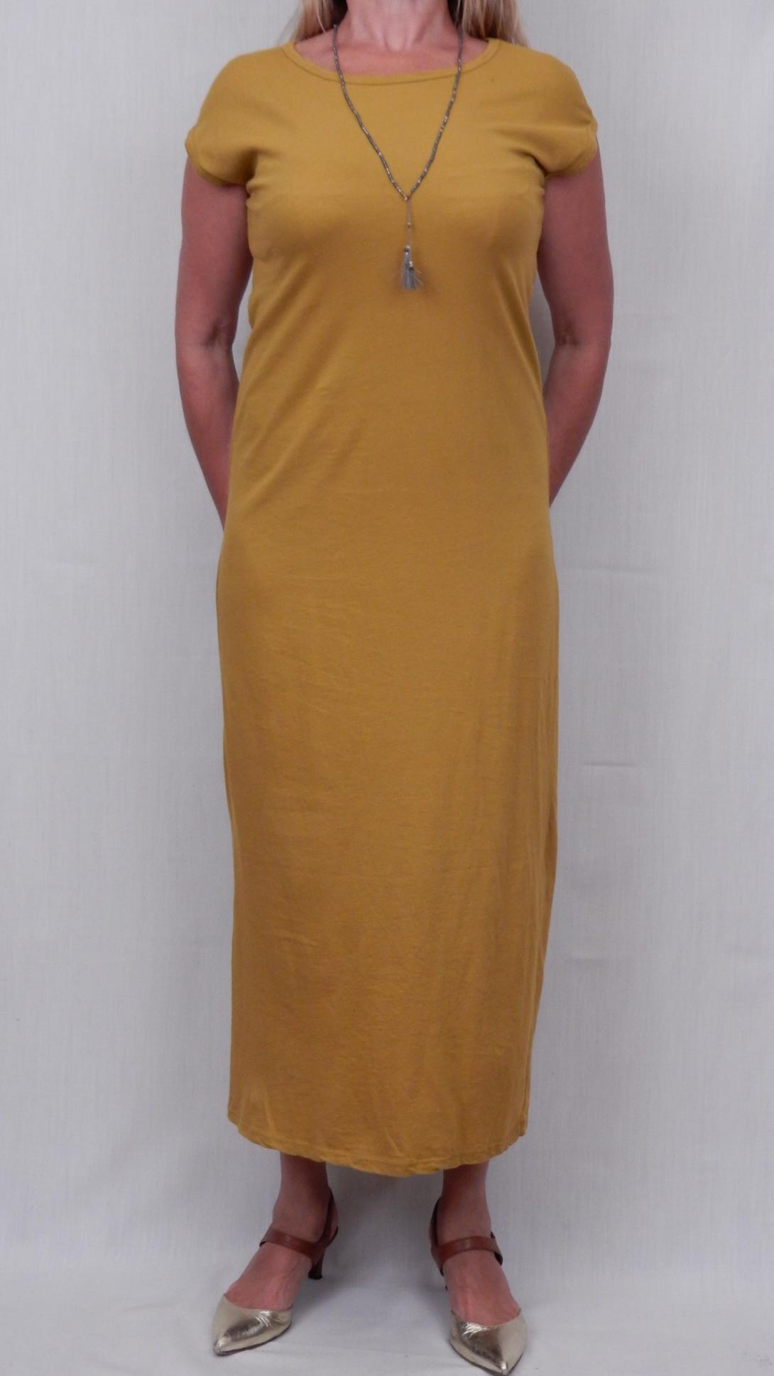 Длинное платье из 100% хлопка . Цвет спокойный -горчичный. В комплекте к платью в подарок маленькие бусики.