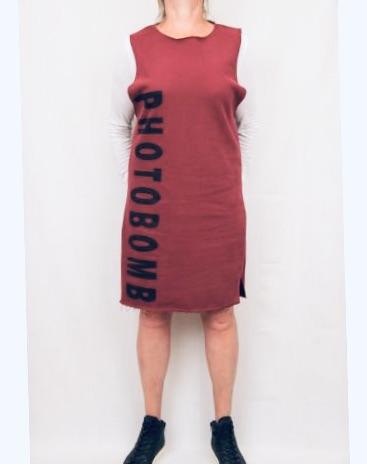 Cтильное безрукавное платье из фельпы бордового цвета с принтом.Это новая коллекция PLEASE Италия!