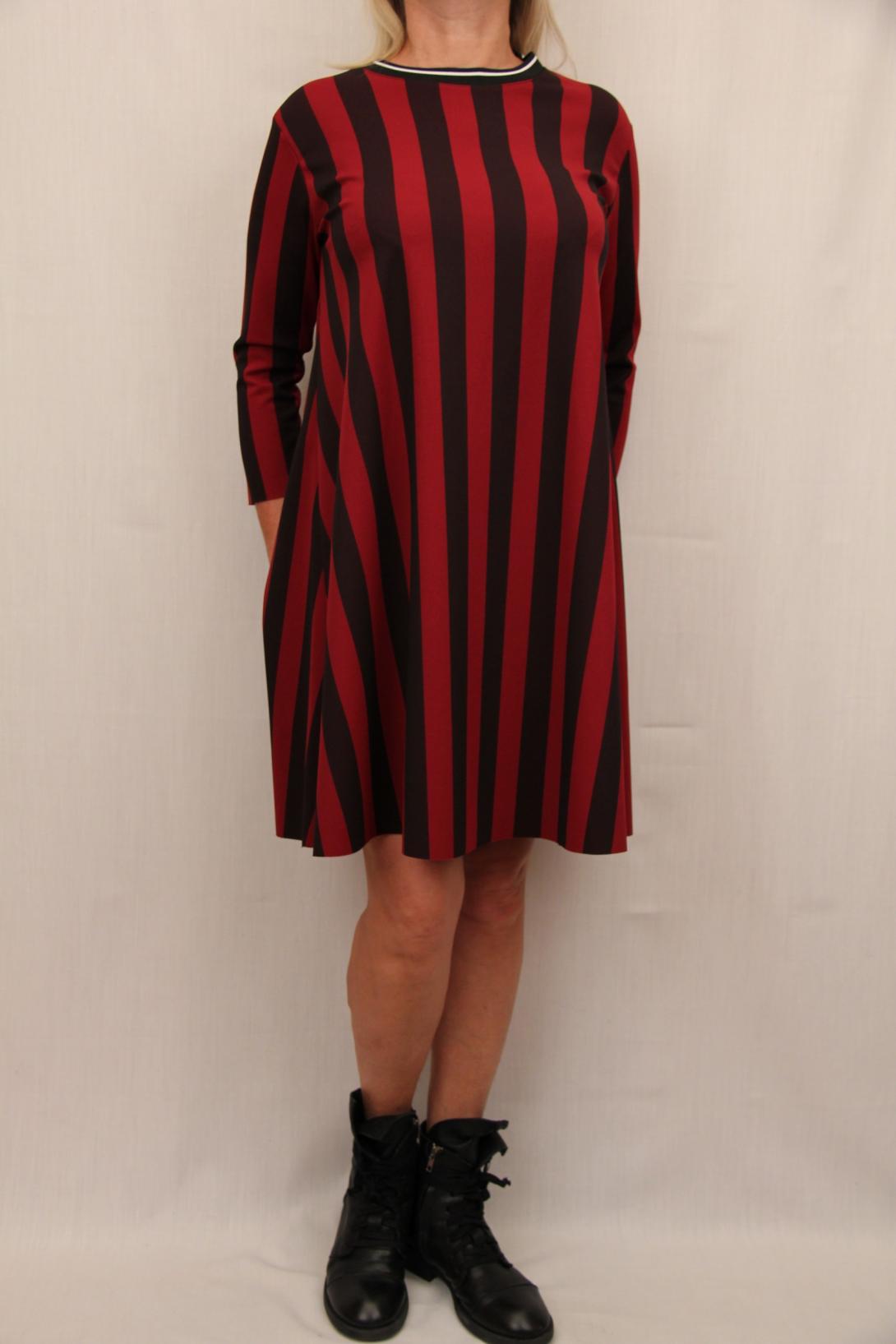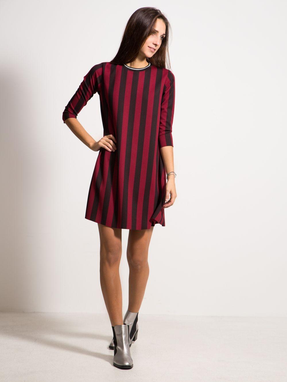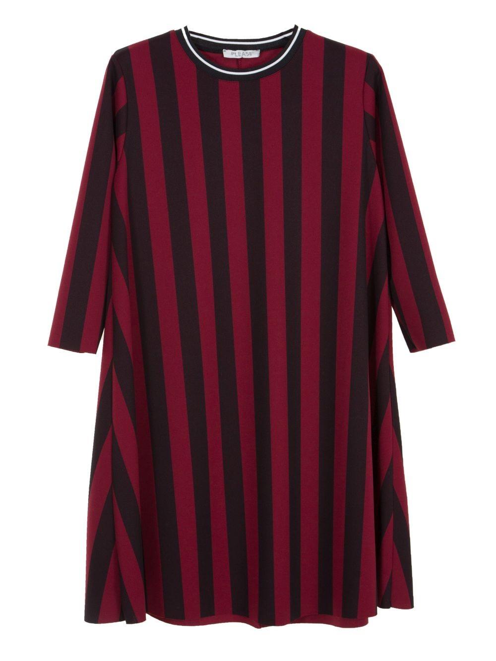 Стильное платье в активную продольную полоску от итальянского бренда Please. Платье трапецевидного кроя, сидит отлично.