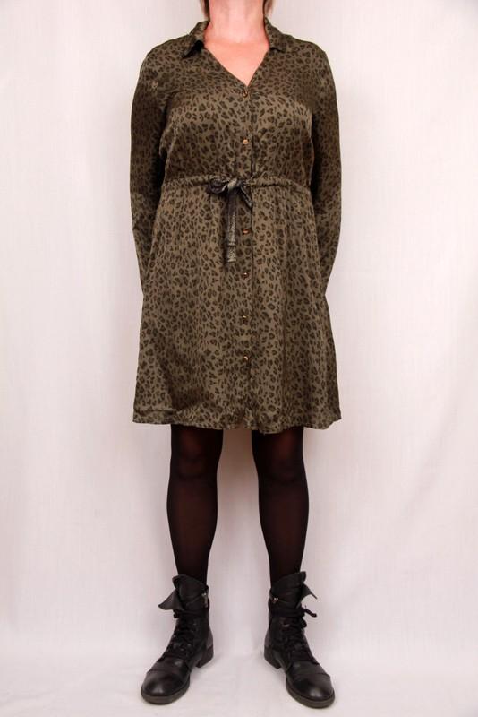 Красивое платье с животным принтом в цвете хаки и розовом. Платье на кулиске, при желании можно носить как платье -рубашку.