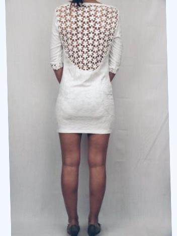 Белое трикотажное платье с кружевной спиной.Платье нарядное. может подойти для торжественных моментов.. и для работы в офисе если надеть жакетик.