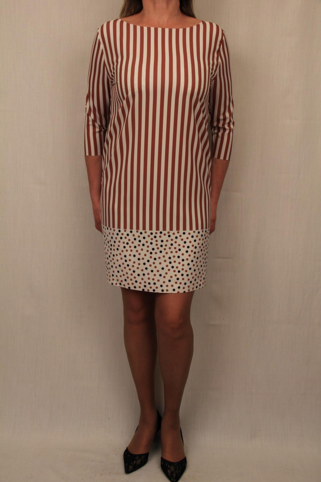 Эффектное платье в продольную полоску. Платье узкого кроя и рекомендуется для размеров 42-44.