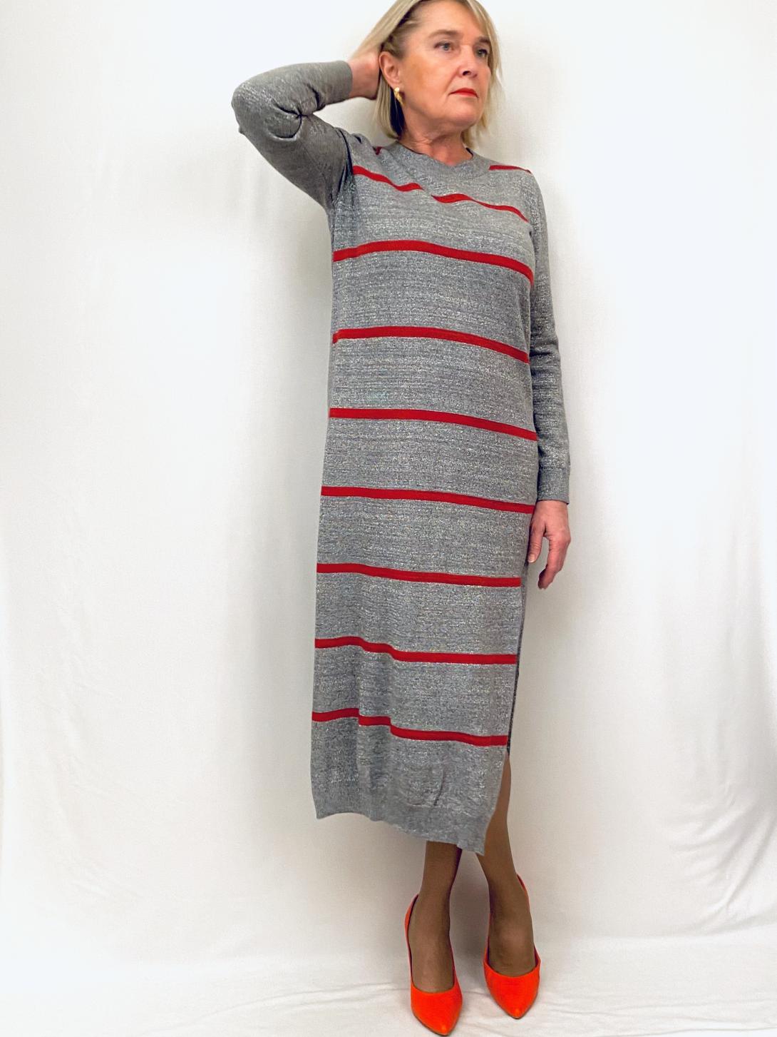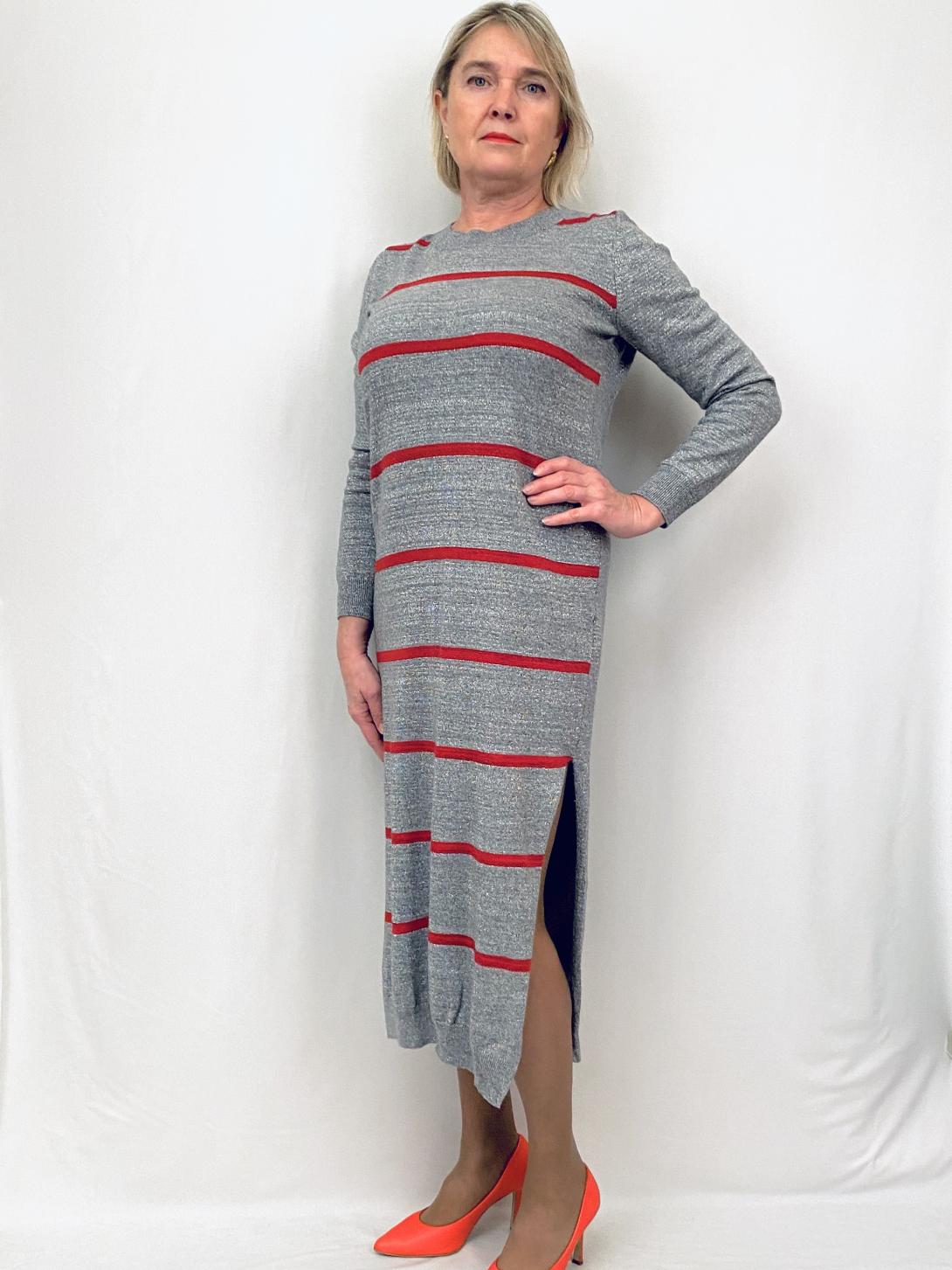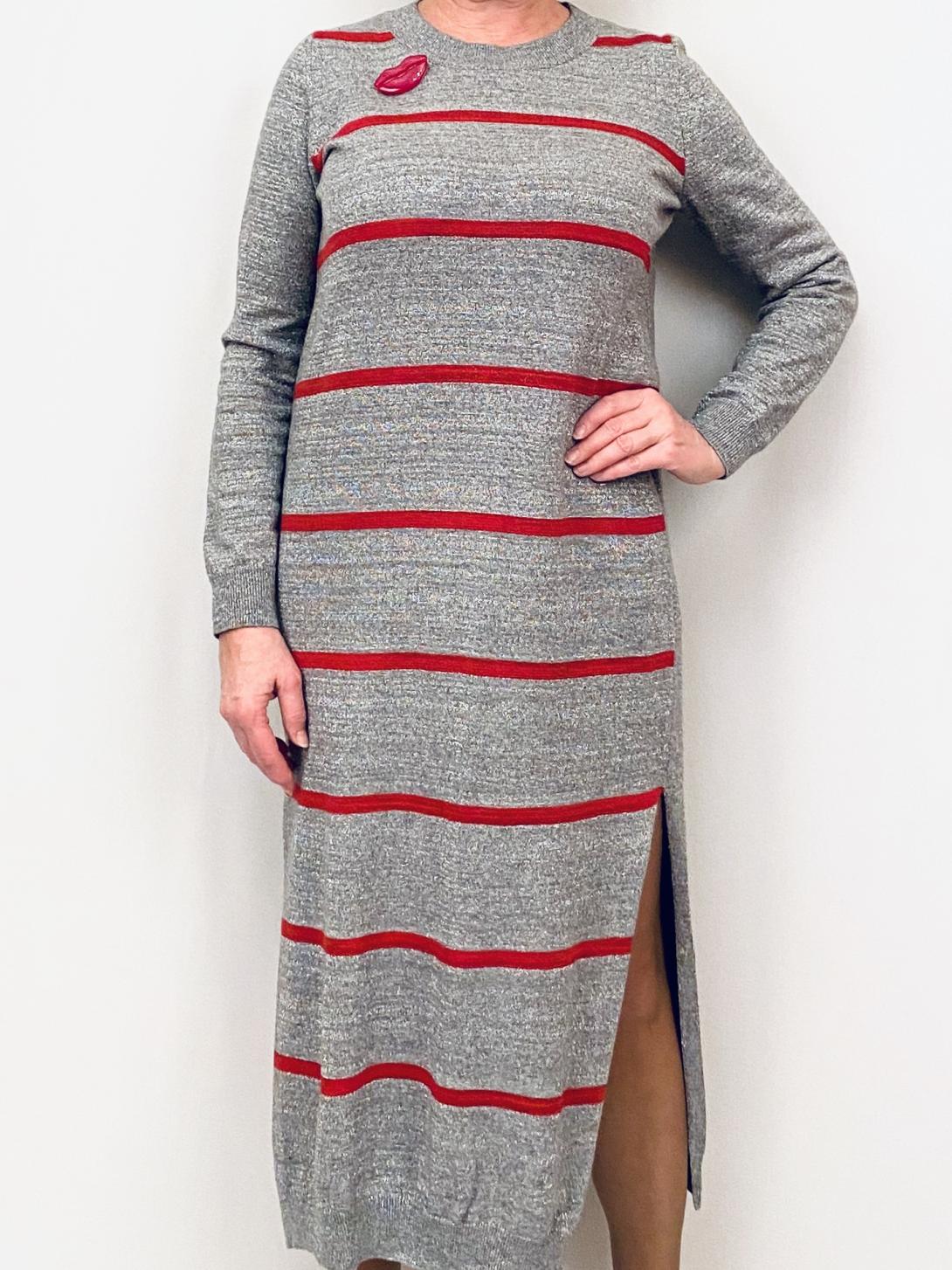 Трикотажное платье с люрексом, ниже колена с эффектными боковыми разрезами.Платье с люрексовой нитью от VICOLO - это сочетание элегантности и комфорта.