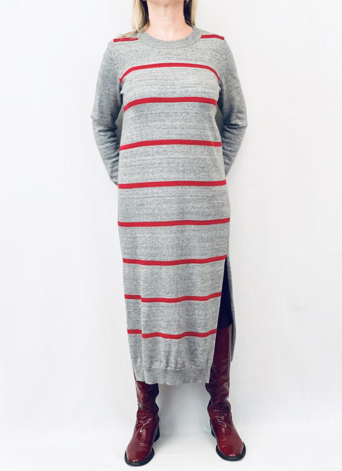 Длинный рукав и вырез воротника лодочкой добавляют платью элегантности и утонченности.