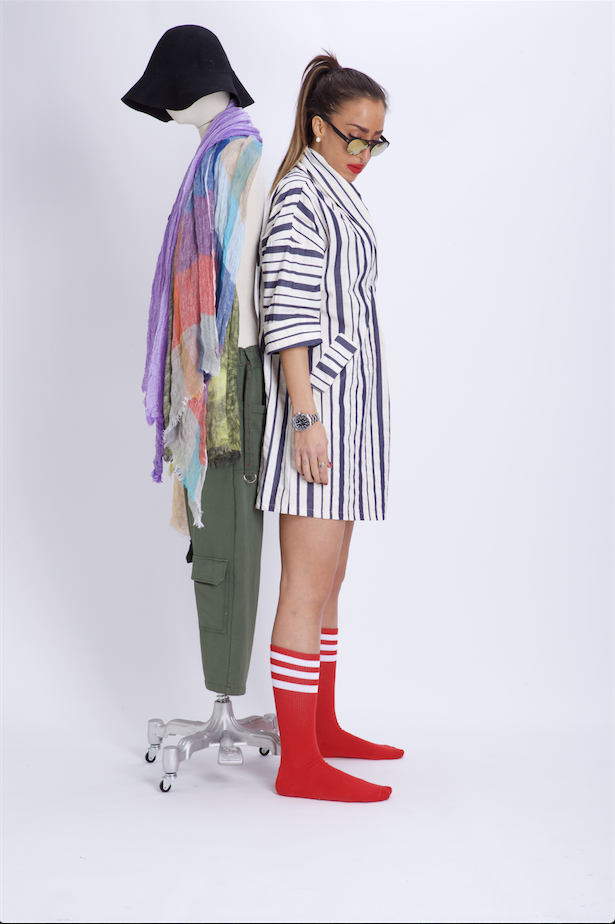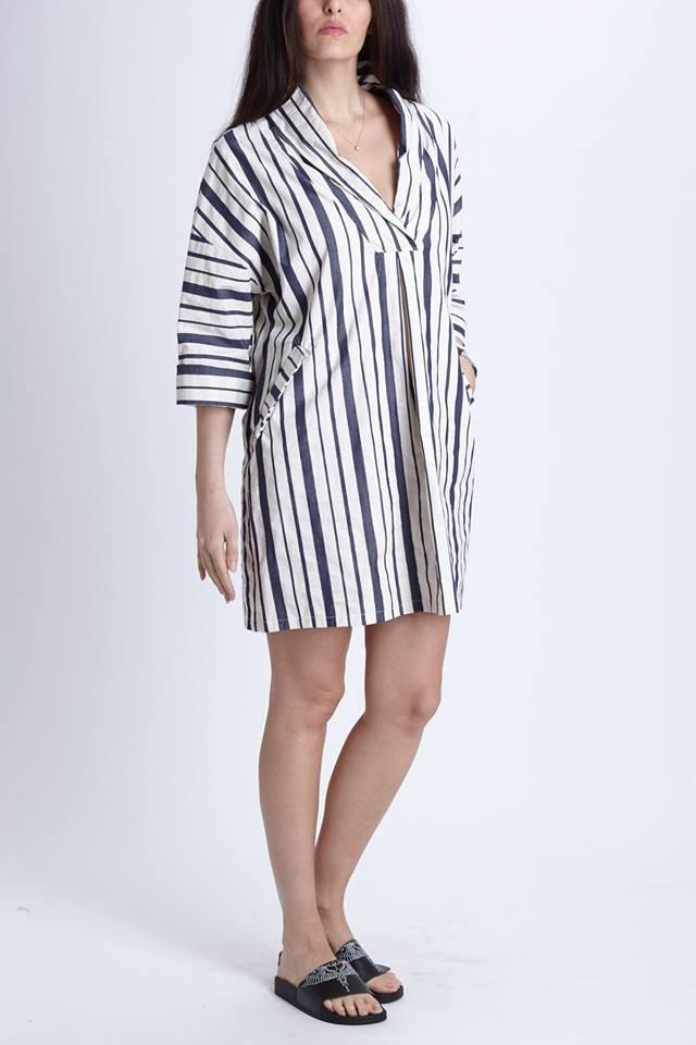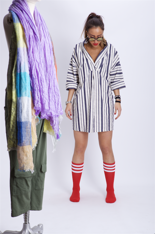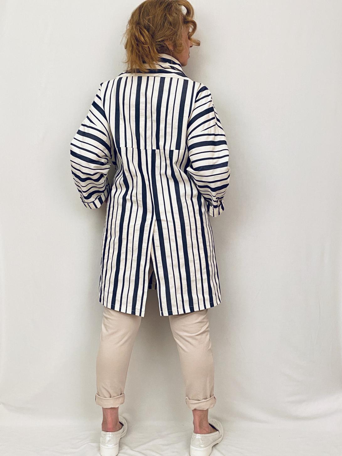 Стильное платье в крупную полоску. Сзади глубокая шлица.Платье отлично комплектуется с джинсами или трикотажными брюками от Wendy Trendy.