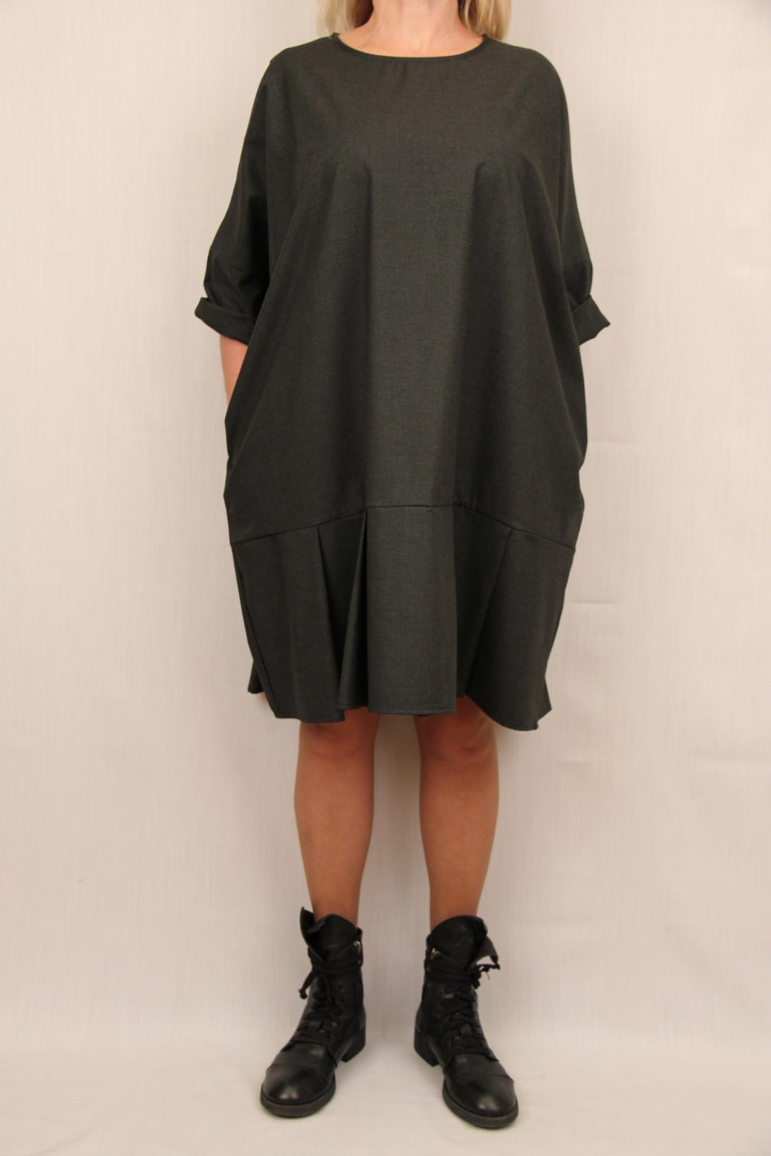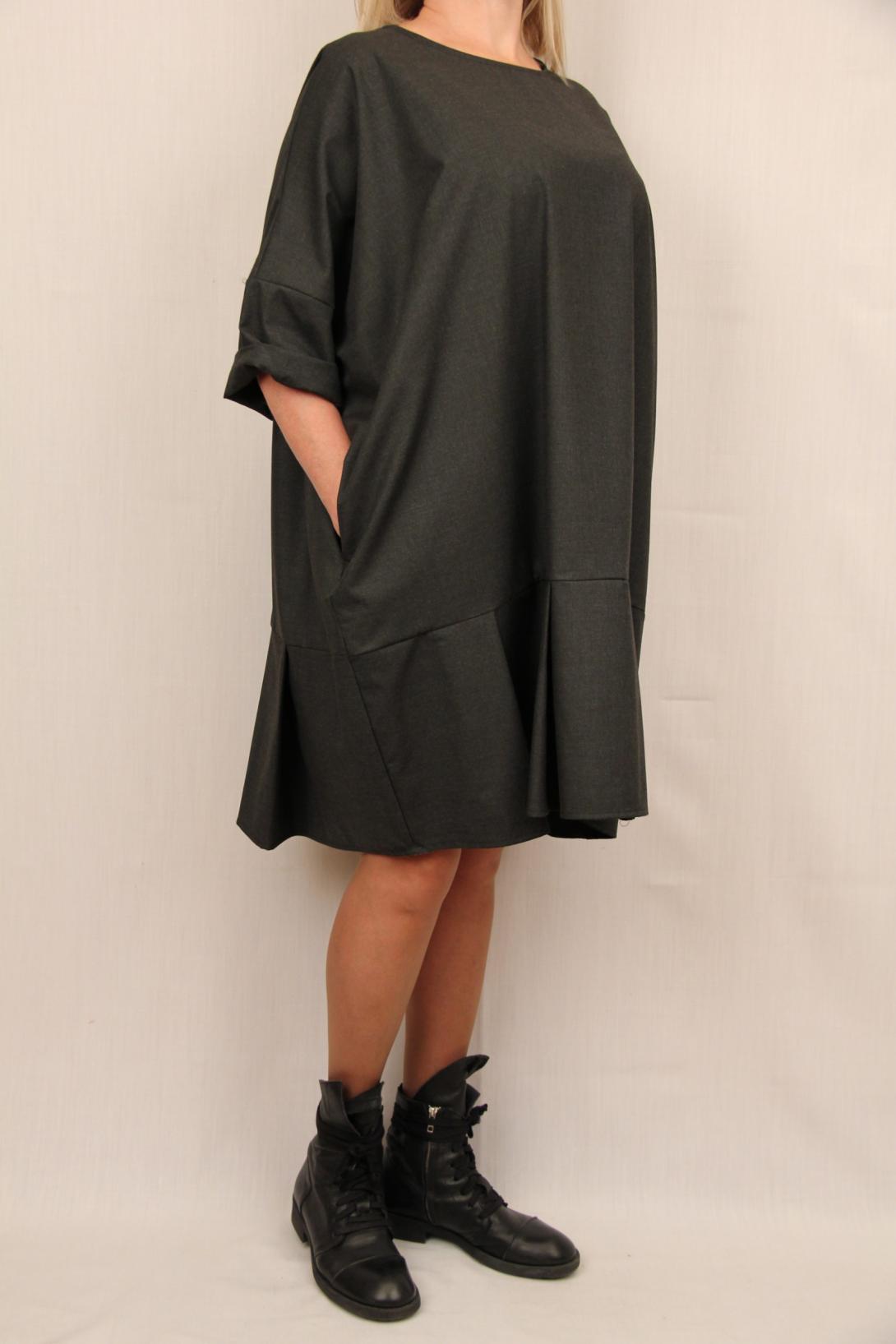 Модель платья в стиле оверсайз. Цвет превосходный-графитовый. Идеально бросить на платье что ни будь из аксессуаров, красивый шарф или стильную бижутерию и ваш образ готов!
