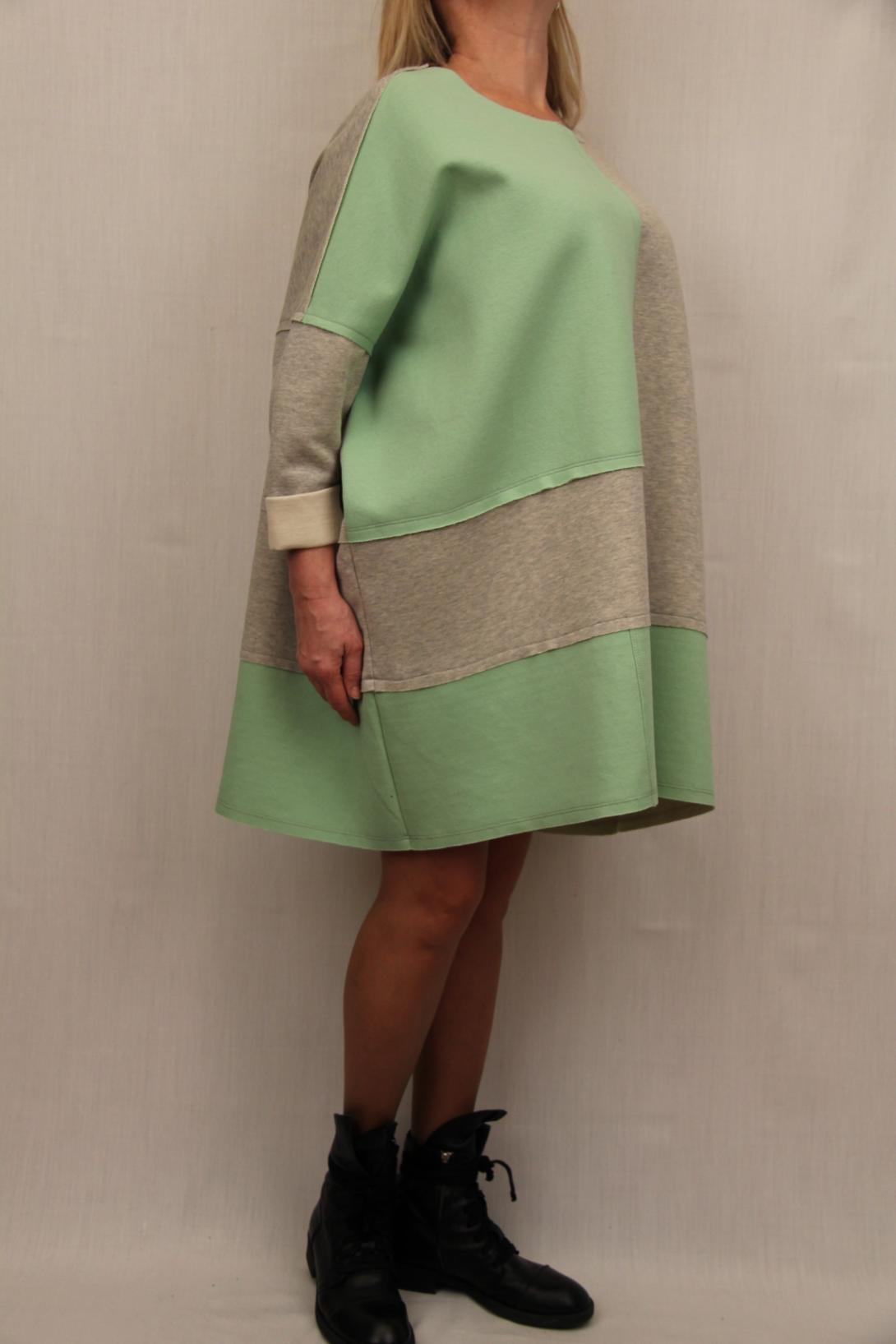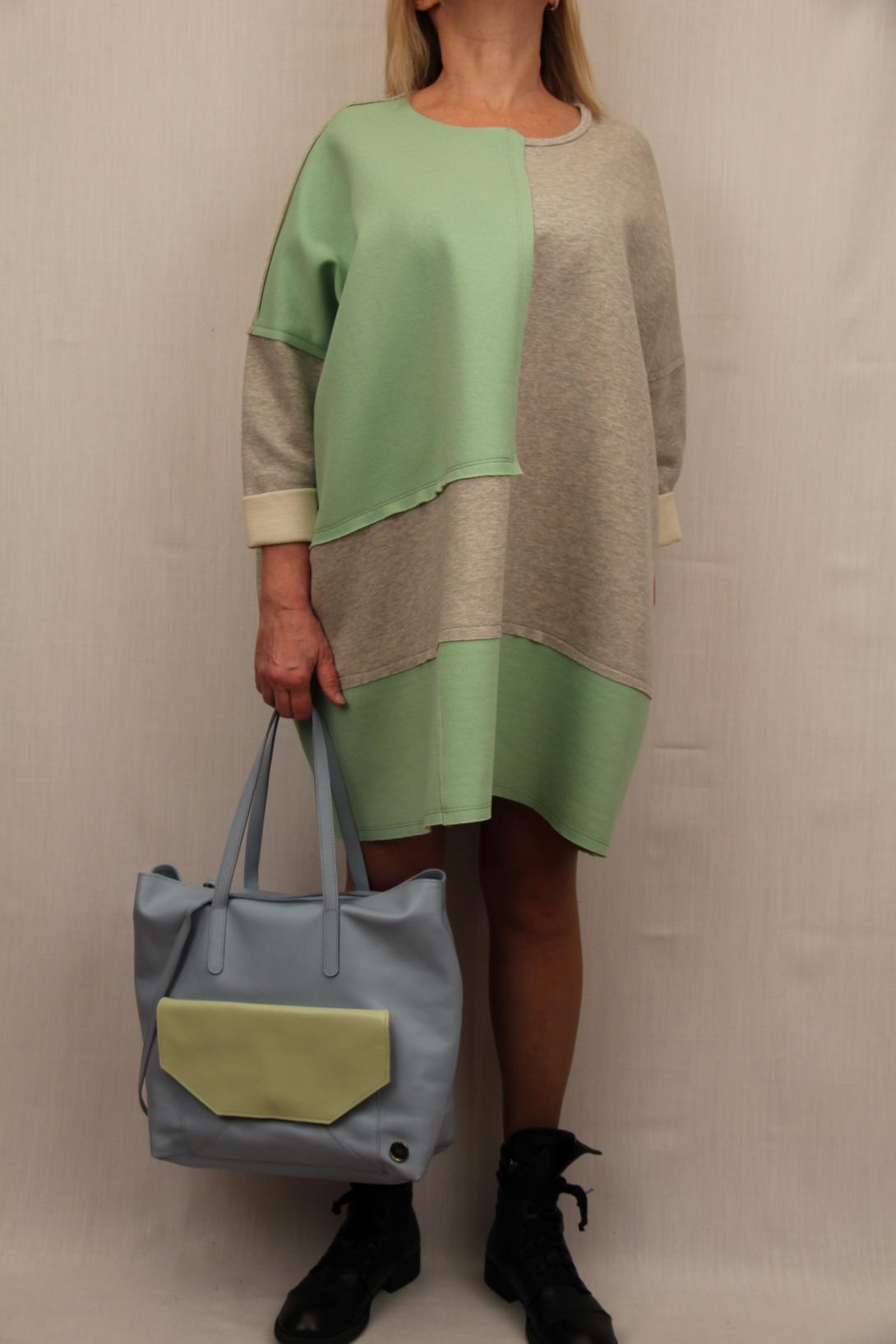 Оригинальное платье в мятно-серых тонах. Платье из плотной ткани.модель - оверсайз.