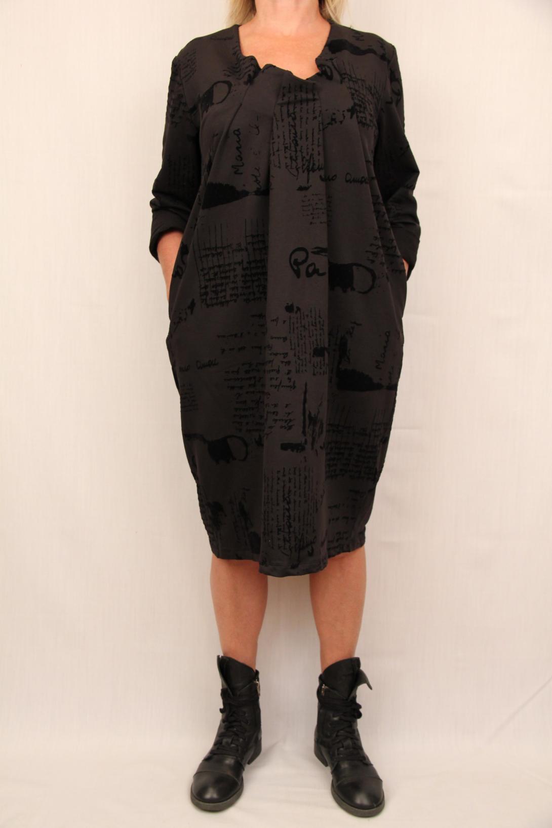 Красивое чёрное платье с набивным бархатным рисунком на ткани. Платье в стиле оверсайз и подойдёт для обладательниц фигуры "яблоко".