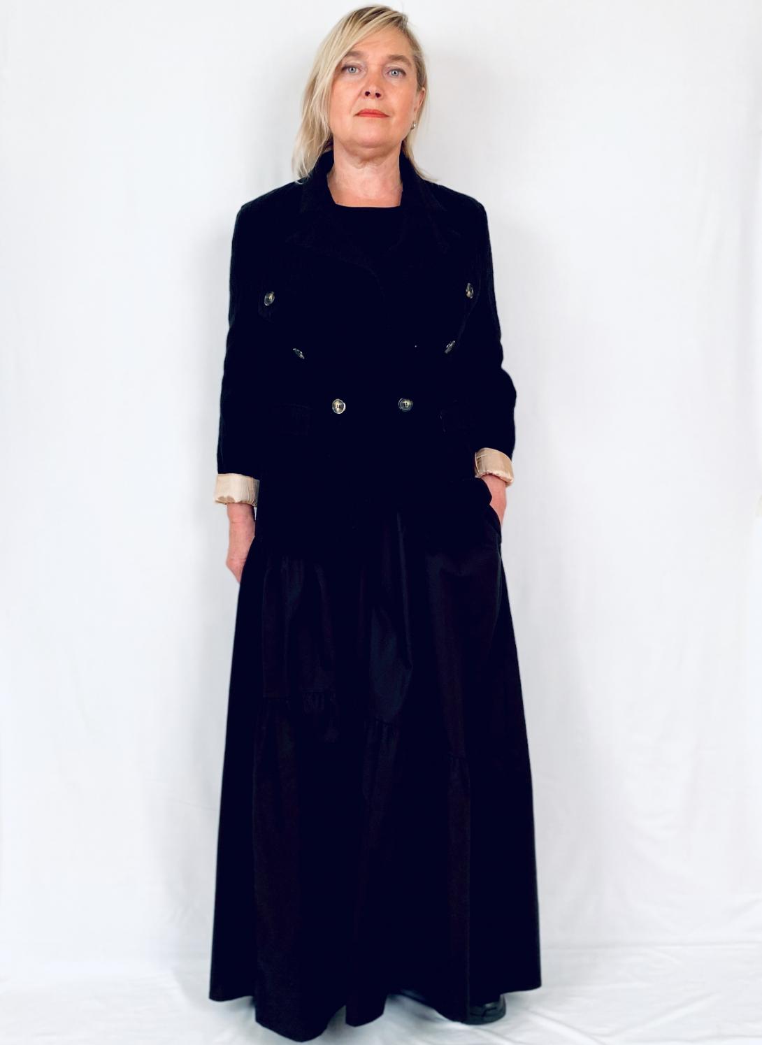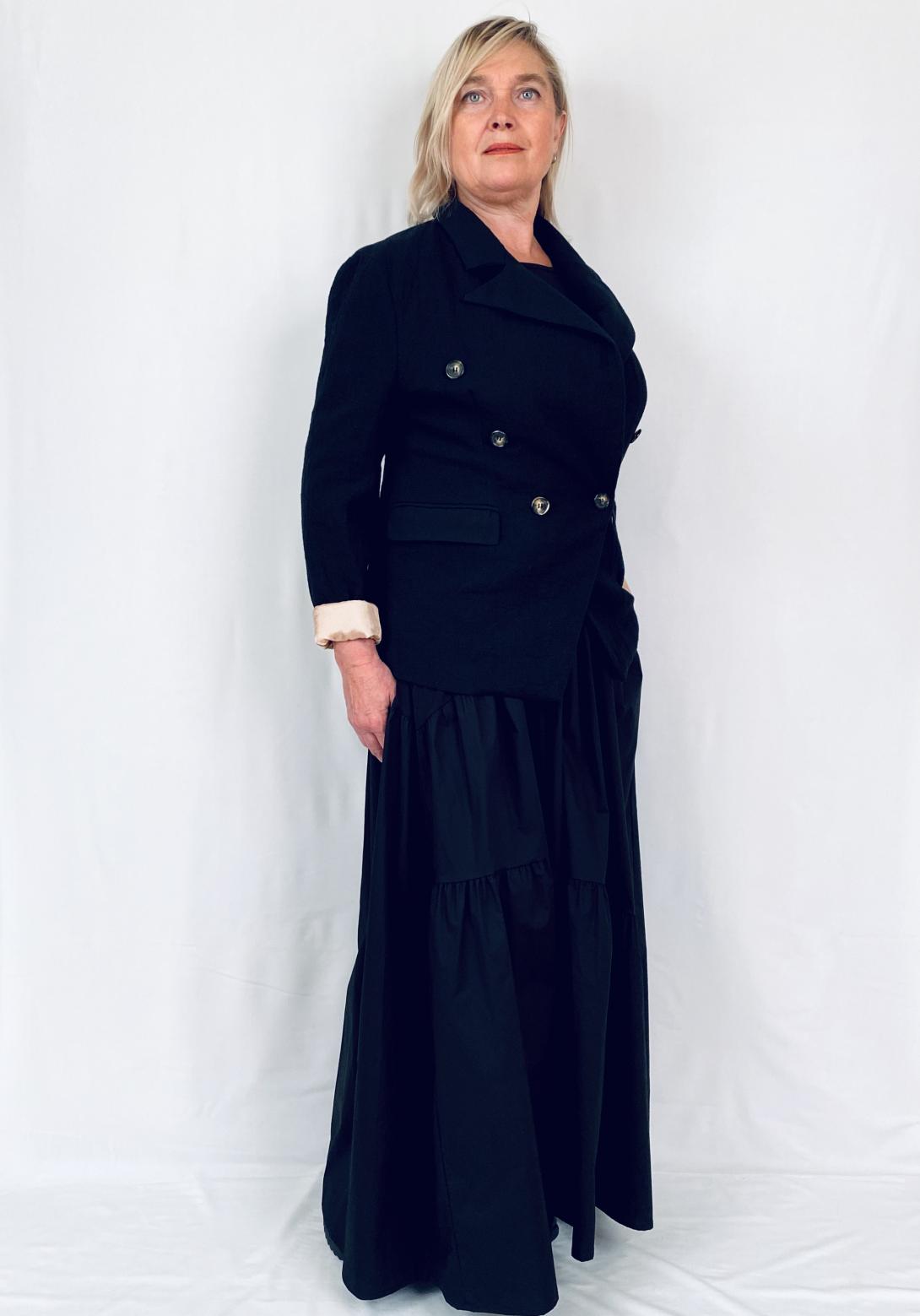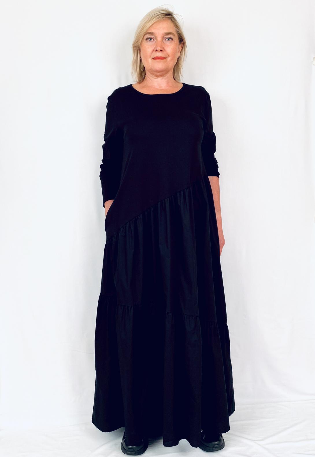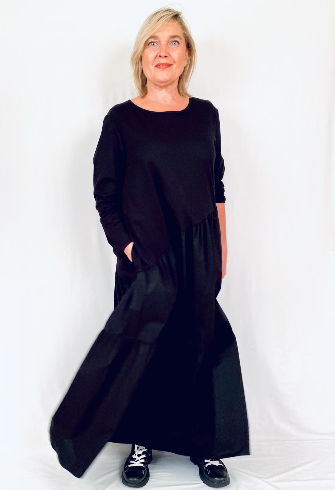 Стильное итальянское платье в "пол".Платье-каскадное.Верхняя часть платья-трикотаж.Рукав-3/4.Отлично комбинируется с жакетом.