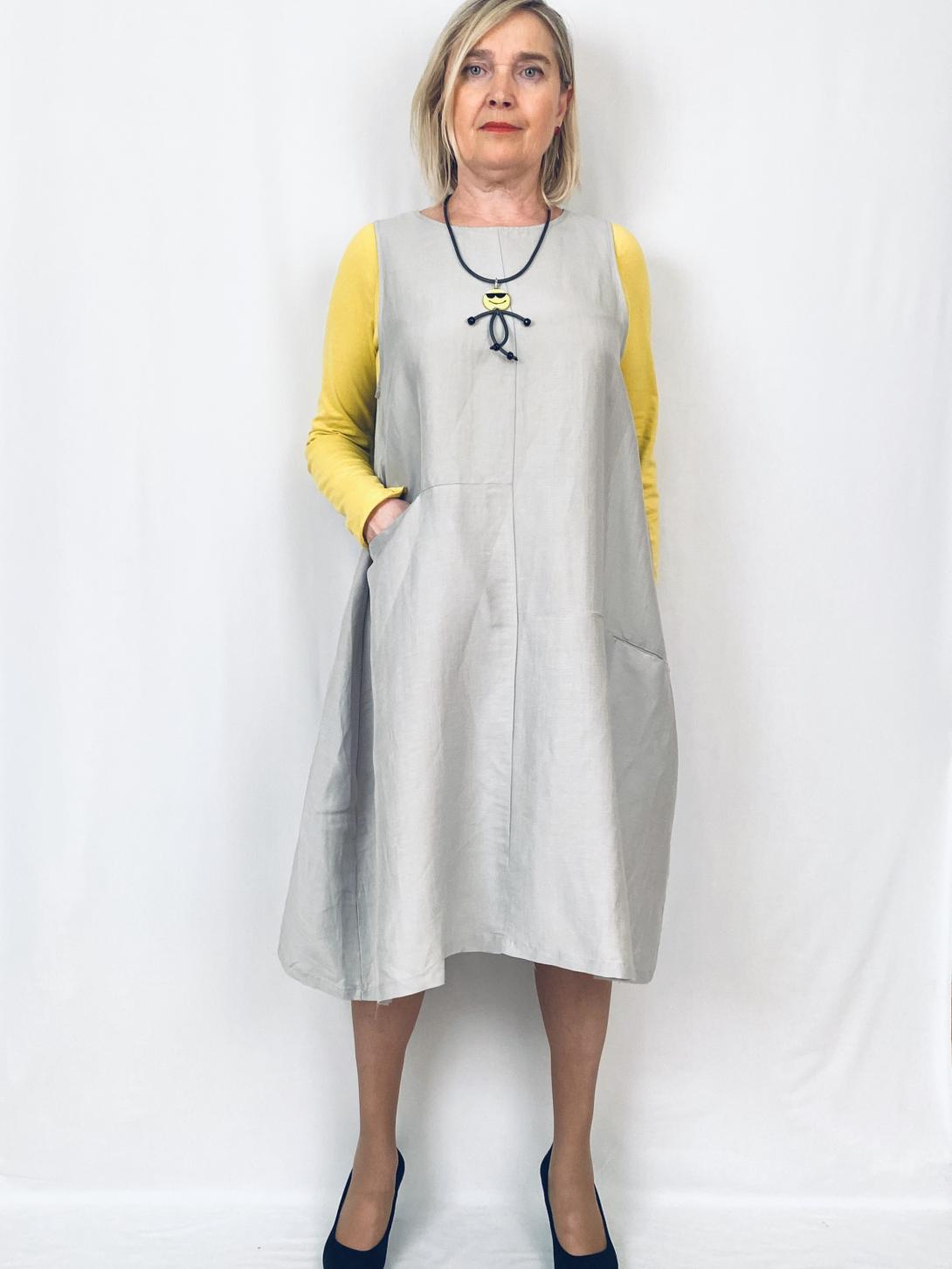 Особенностью этого платья является его состав - 70% льна и 30% вискозы. Благодаря этому, оно легкое, дышащее и очень комфортное в носке. Кроме того, сарафан имеет карманы, что делает его еще более удобным.