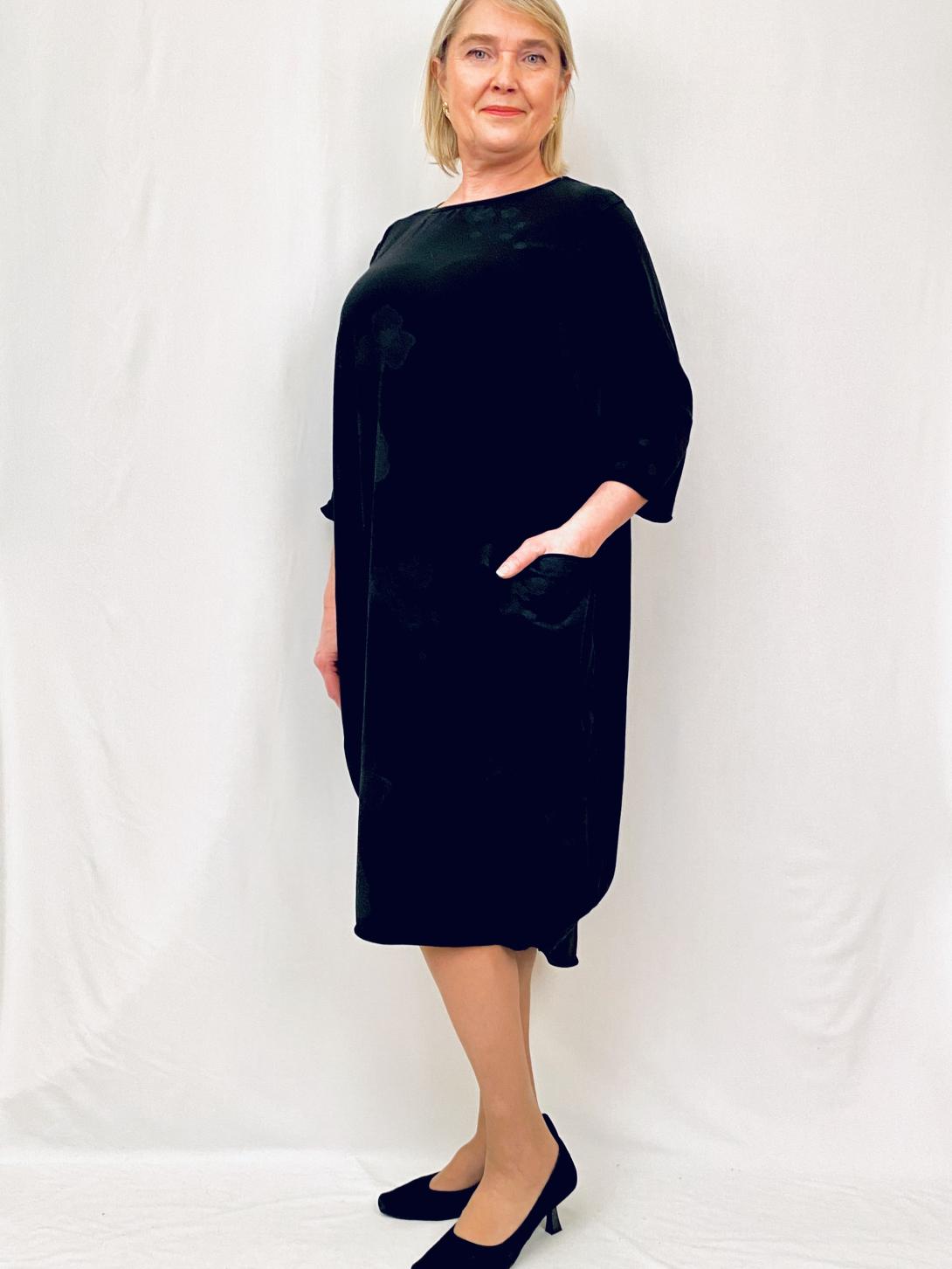 Платье имеет длину миди, что делает его актуальным для любого возраста и роста.