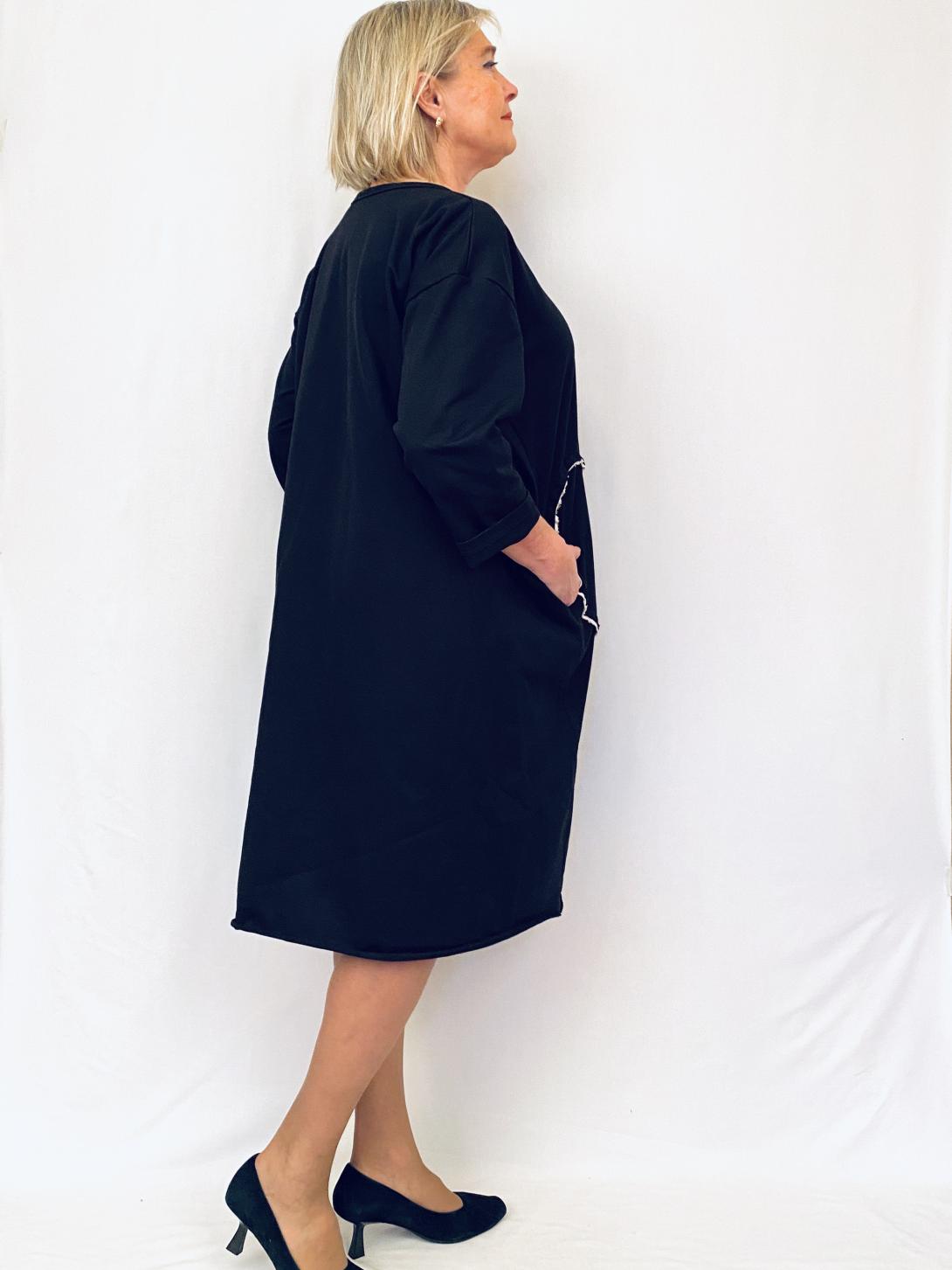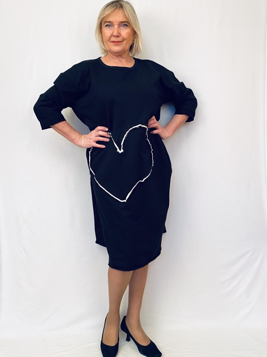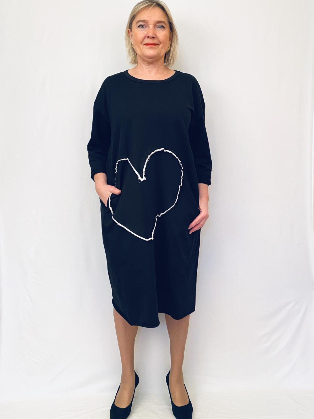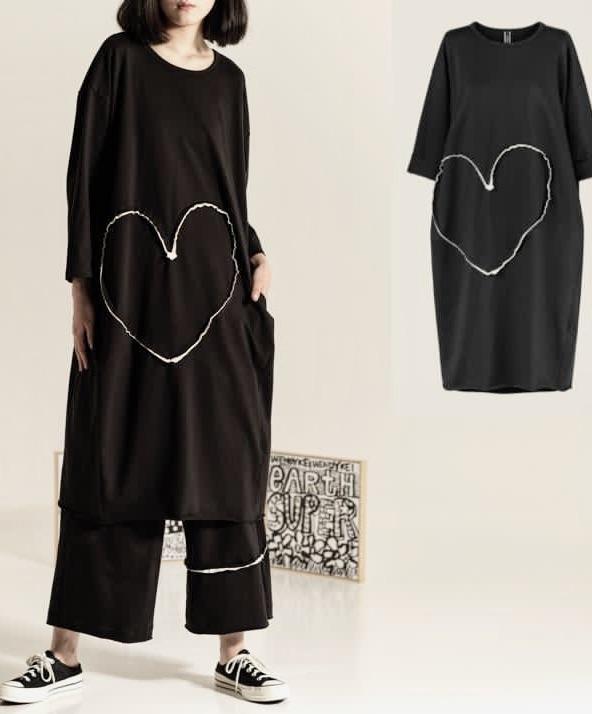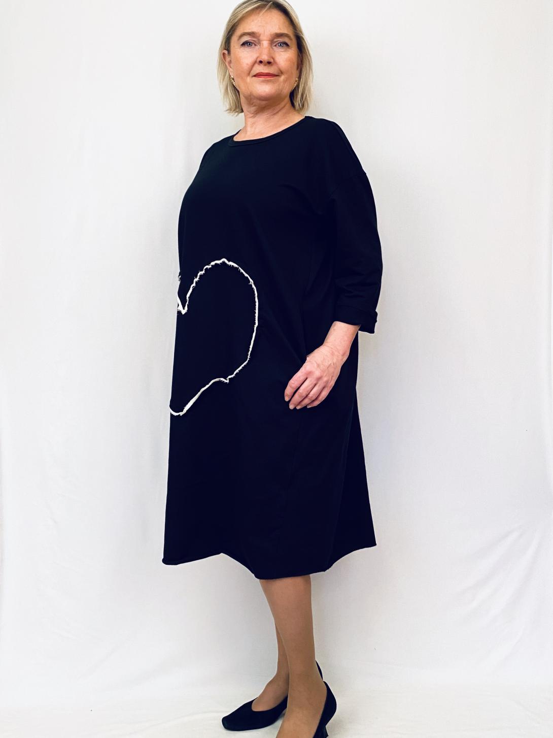 Чёрное стильное платье прямого силуэта с сердцем. Платье имеет два удобных кармана.Платье Wendykei - стильный и комфортный выбор для повседневной носки.