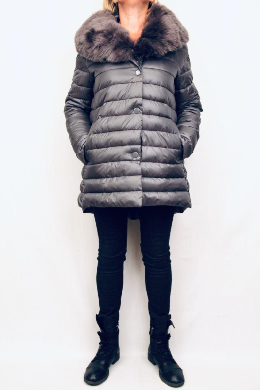 Пальто на синтепоне с меховым воротником из меха "чебурашки" . Меховой воротник можно отстегнуть..Пальто со слегка спущенной линией плеча, сзади пальто длиннее.Куртка зимняя с меховым съёмным воротником от бренда "Minority".