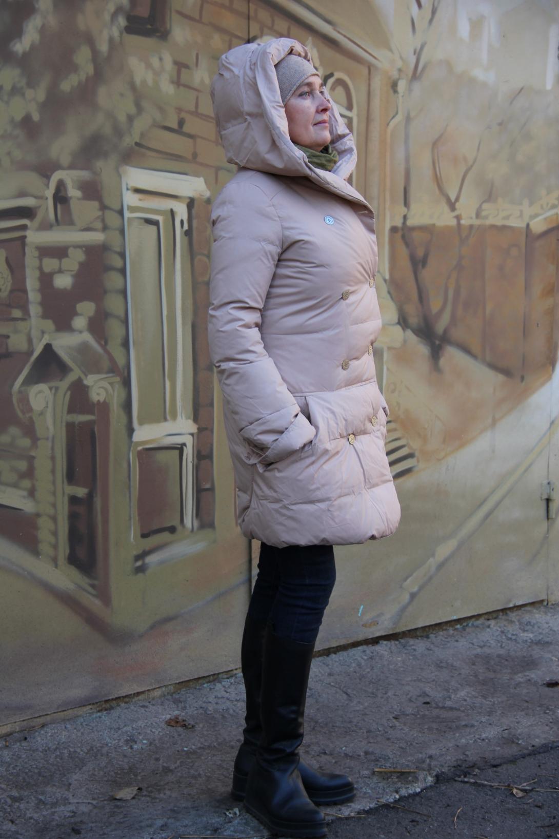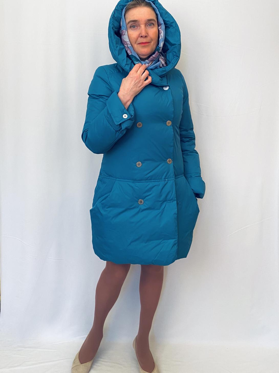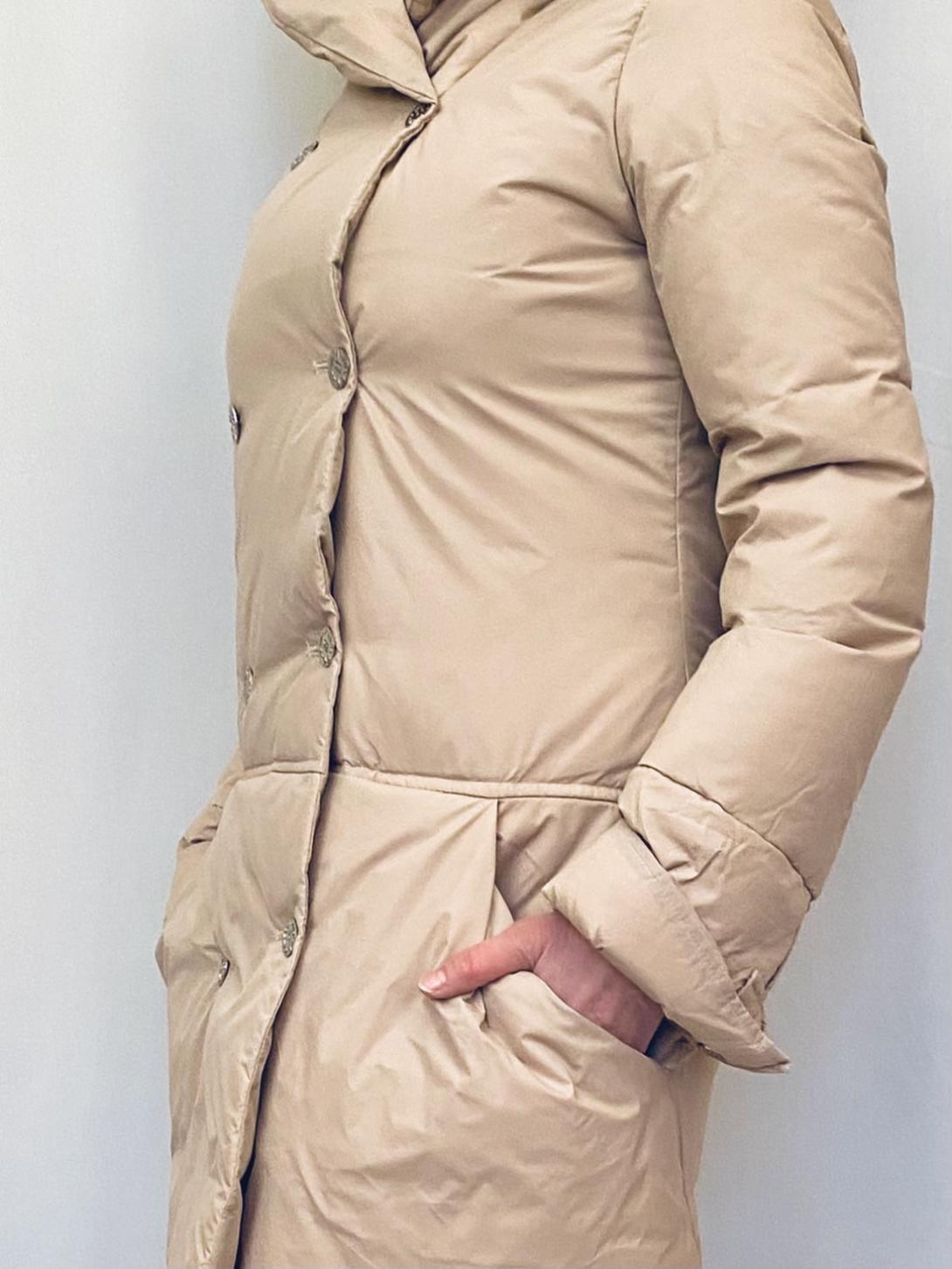 Пуховик с капюшоном на пуговицах от Итальянского бренда Manila Grace производство Италия .У пуховика двубортная застёжка, что позволяет дольше сохранять тепло..а капюшон убережёт вас от ветра и снега.