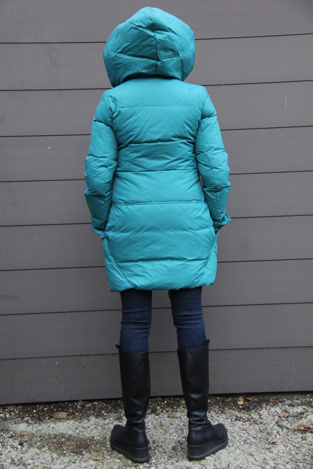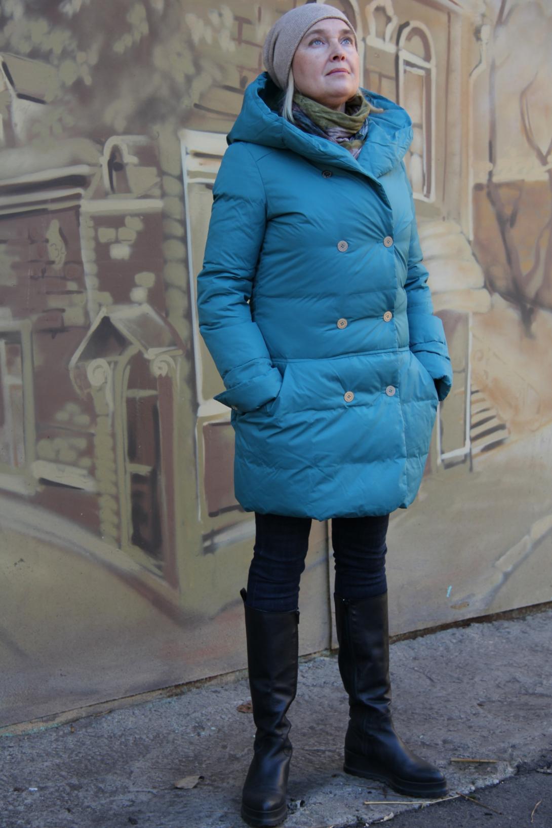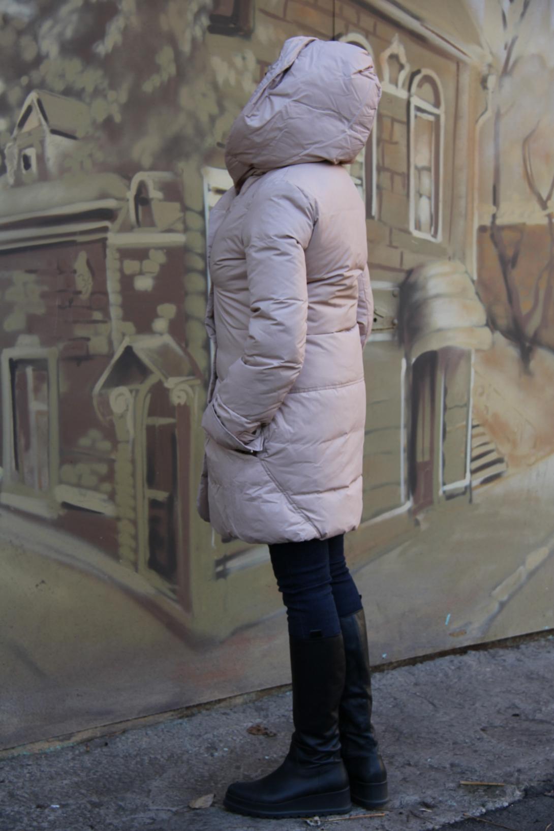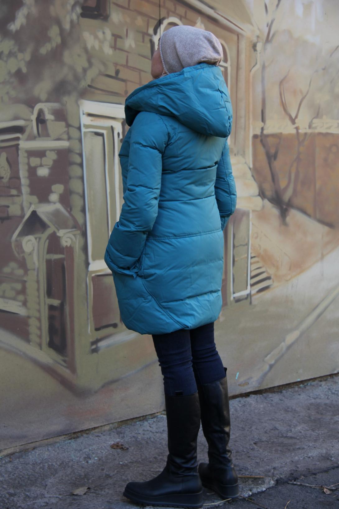 Пуховик с капюшоном.