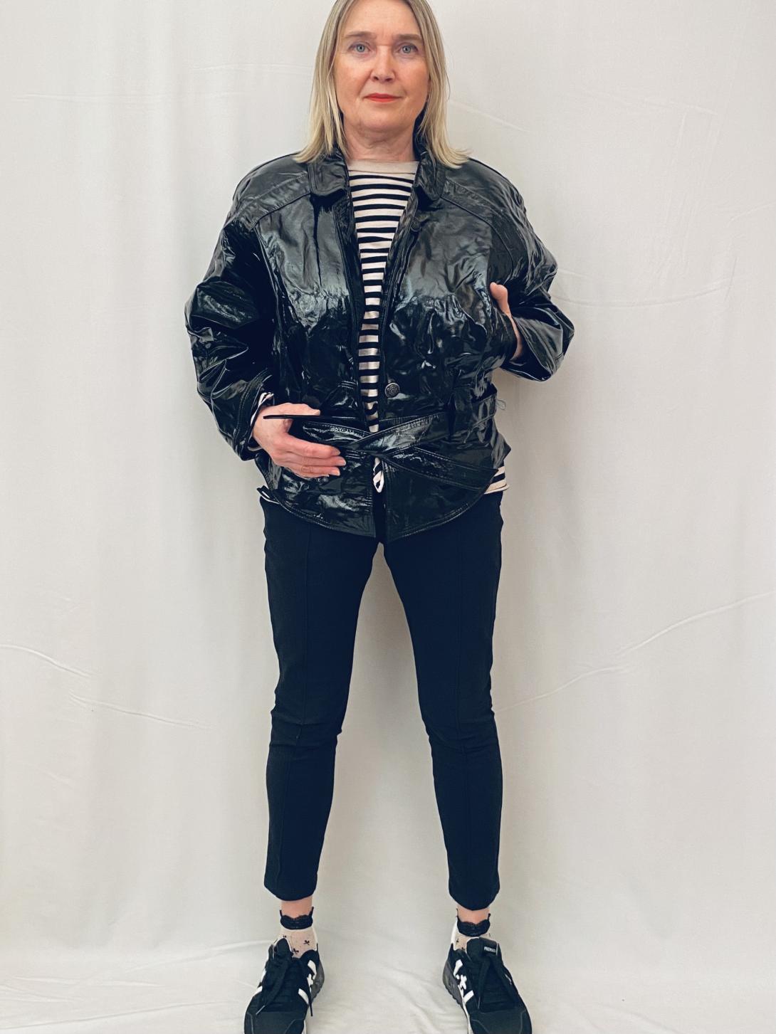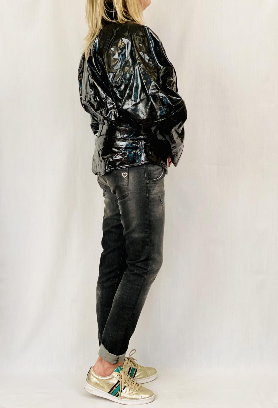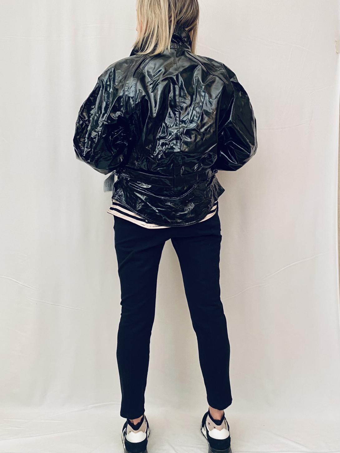 Кожаная эффектная лакированная куртка на пуговицах, производства Юж.Корея. Куртки с объёмным рукавом -реглан