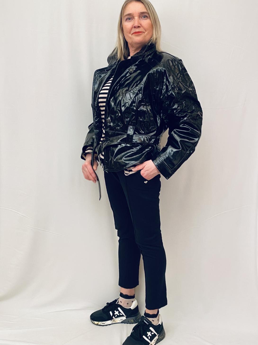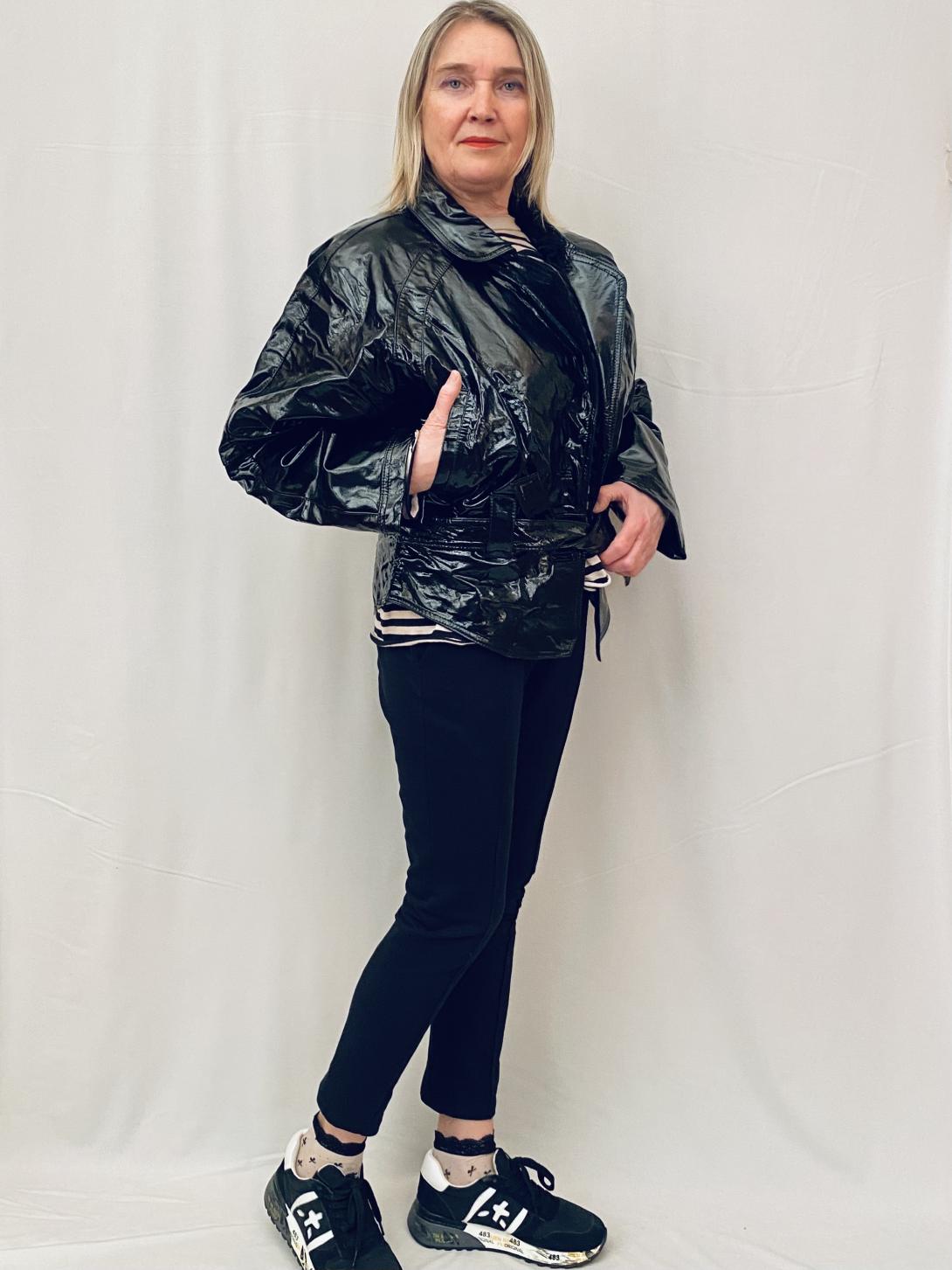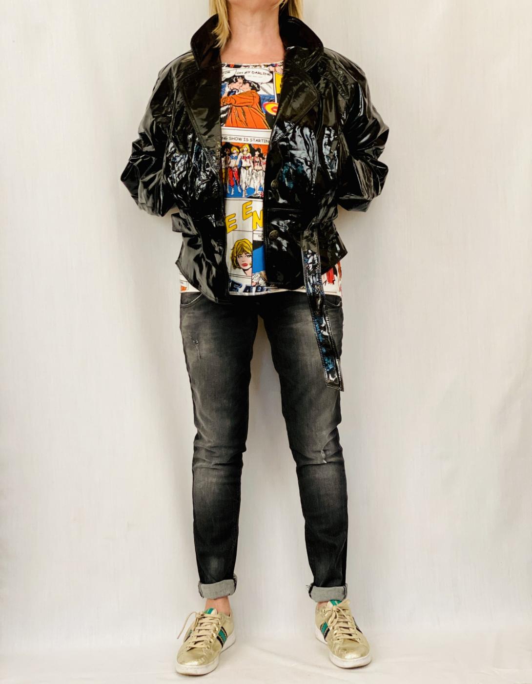 Кожаная эффектная лакированная куртка на пуговицах, производства Юж.Корея. Куртки с объёмным рукавом -реглан