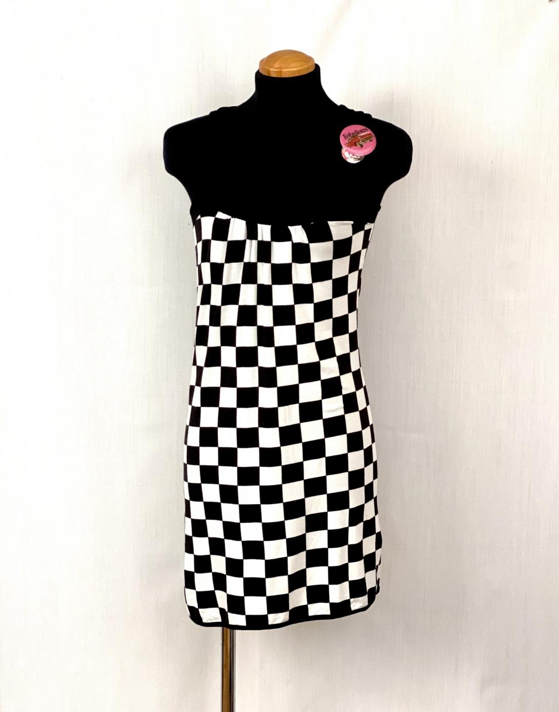 Платье в чёрно-белую клетку, производство Италия. Бренд DENNY ROSE со скидкой. Одежда такого плана всегда притягивает взгляды из за своей яркости.Свободный силуэт, подойдёт и для беременных.
