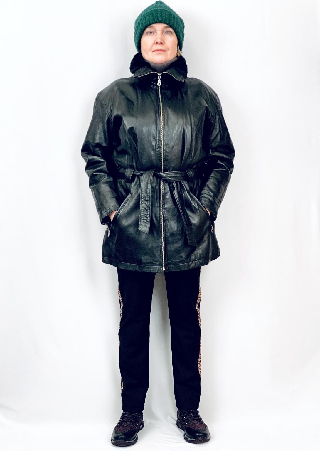 Удлинённая кожаная куртка на молнии из лайковой кожи.
