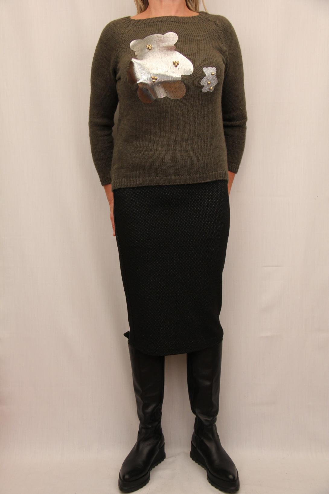 Очень симпатичный тонкий свитерок с серебряный принтом "Teddy" теперь со скидкой на нашем сайте. Размер небольшой.