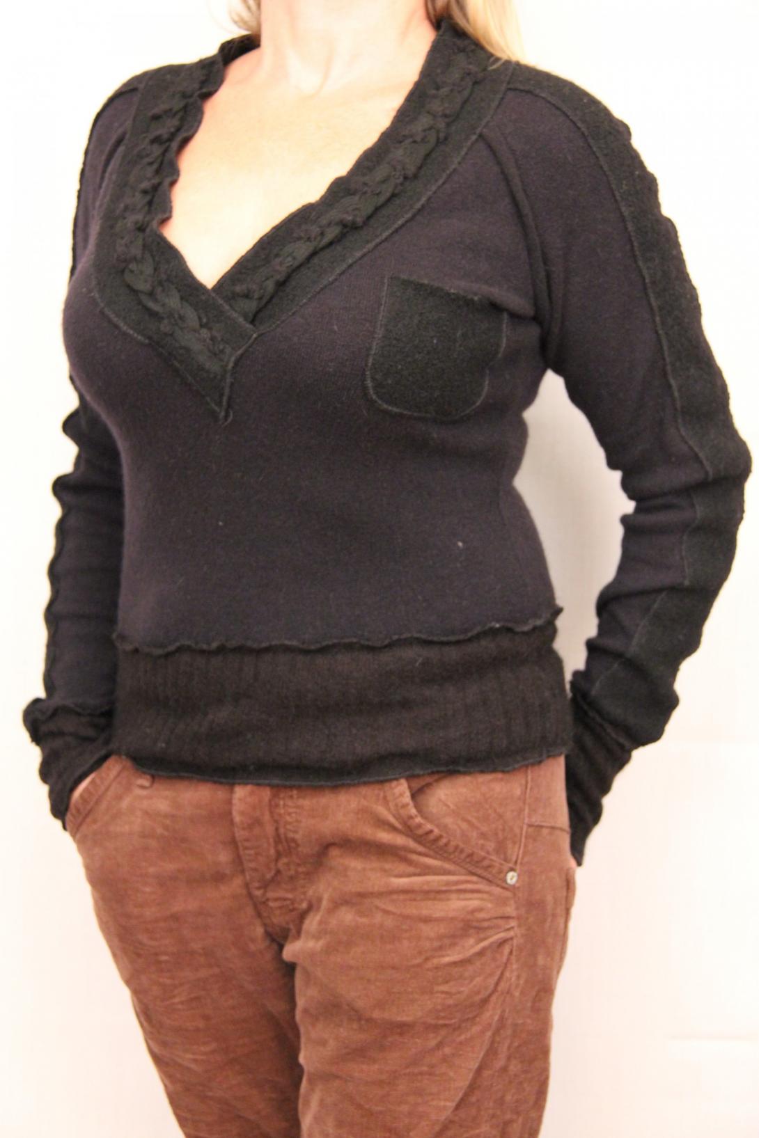 Красивый джемпер с глубоким вырезом. Джемпер чёрного цвета, сидит в "обтяжечку."