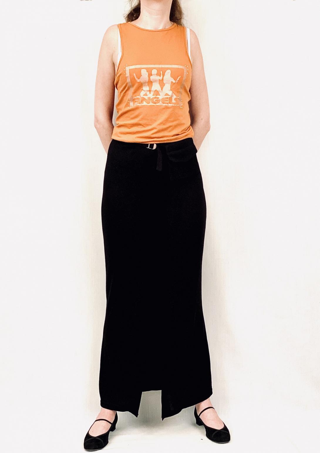 Оранжевый топ с золотым принтом со скидкой. Новая цена всего 900 руб.