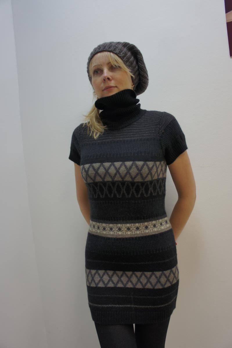 Трикотажное тёплое платье выше колена с коротким рукавом ворот -водолазка.Под платье можно поддеть тонкую базовую модель с длинным рукавом. Туника производство Италия.