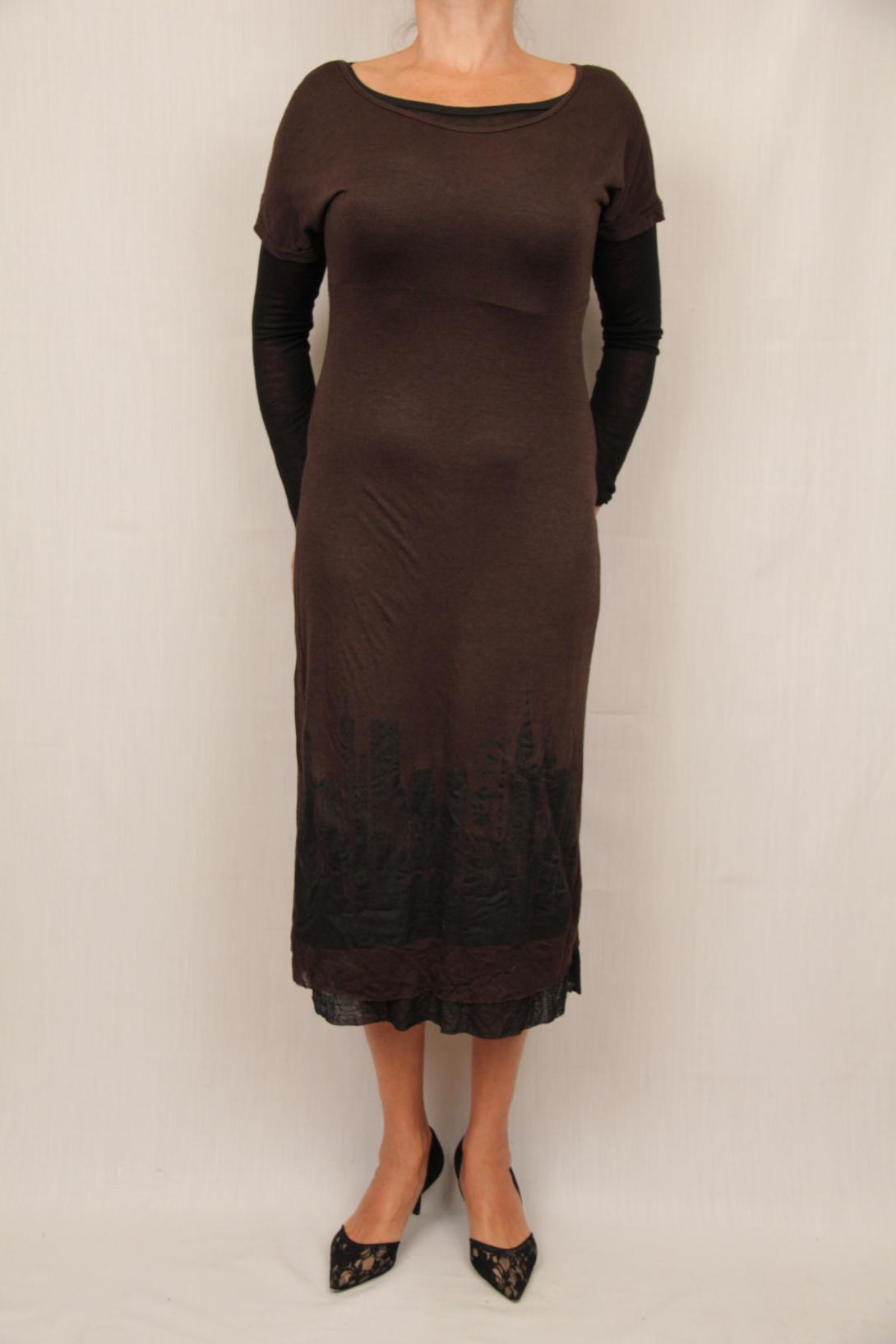 Платье состоящее из двойного тонкого шерстяного трикотажа. По низу выполнен рисунок "Город" Рекомендуем эту модель для стройной фигуры. Платье ниже колена. Стильное.