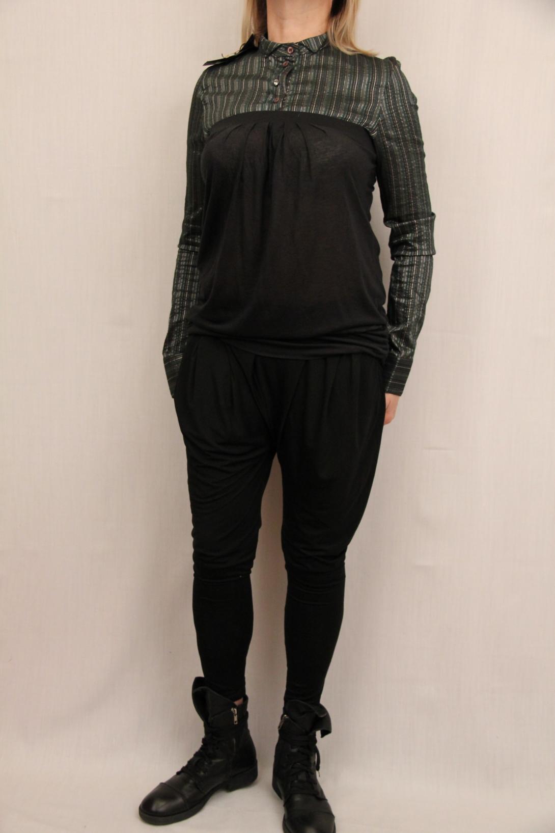 Блузка комбинированная.Верх напоминает по качеству ткани парчу,а низ выполнен из вискозного трикотажа с напуском. Блузка подойдёт для девушек с небольшой грудью и для беременных.