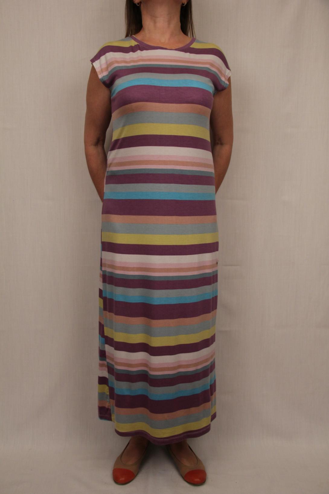 Трикотажное платье в пол весёленькой расцветки идеально для отдыха. Поверх платья можно надеть жакет от итальянского бренда Please. Купить в интернет магазине со скидкой.