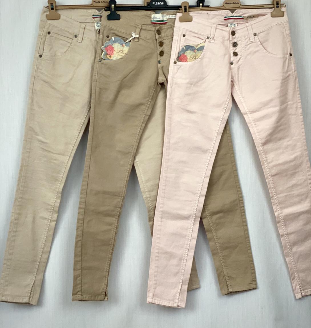 Джинсы итальянские с низкой посадкой бренд PLEASE .Размеры ХS.Светлые тона бледно-розовый, кремовый, светло-бежевый. Цветные джинсы всегда в тренде, а купить джинсы со скидкой - это большая удача.