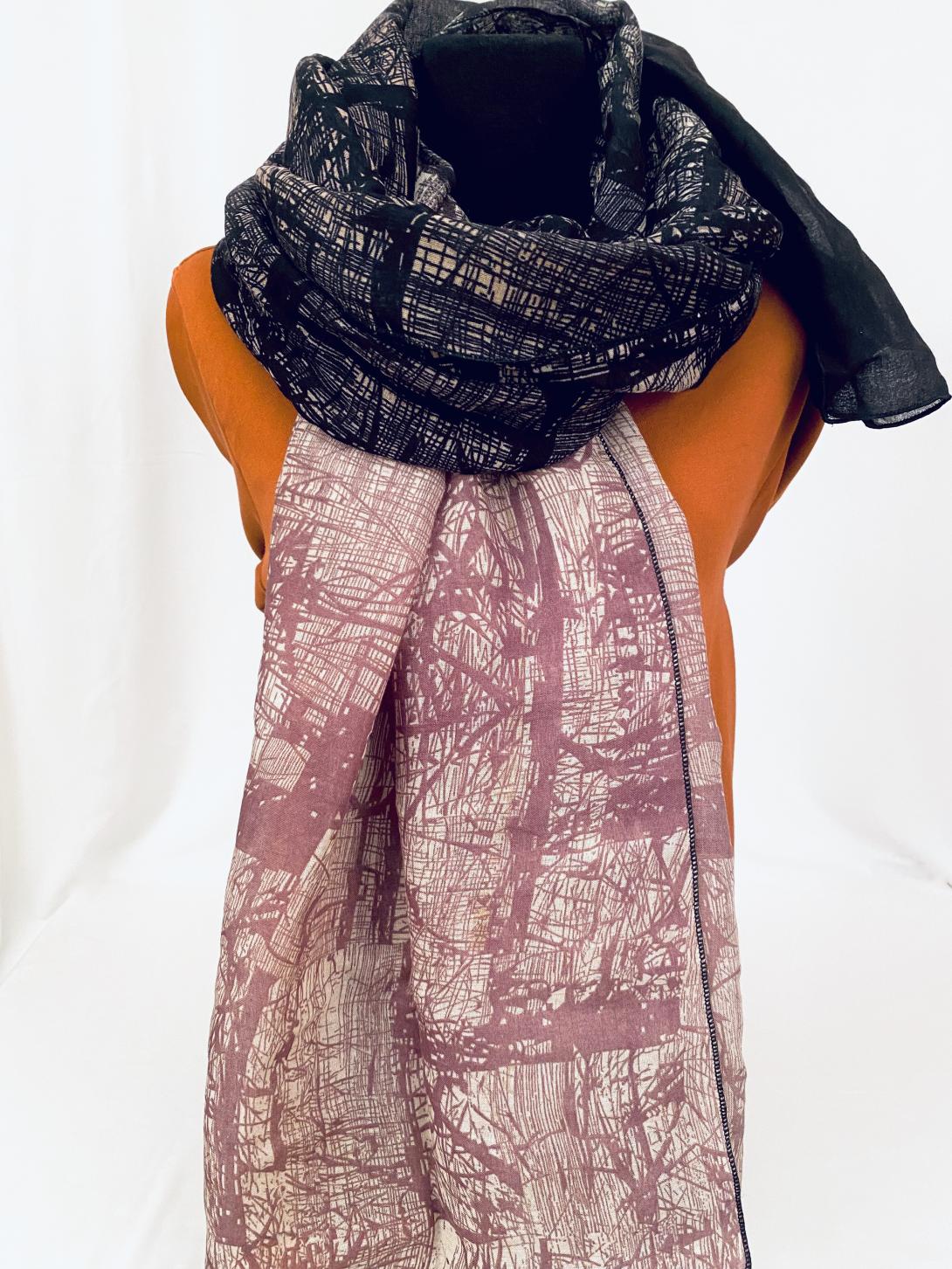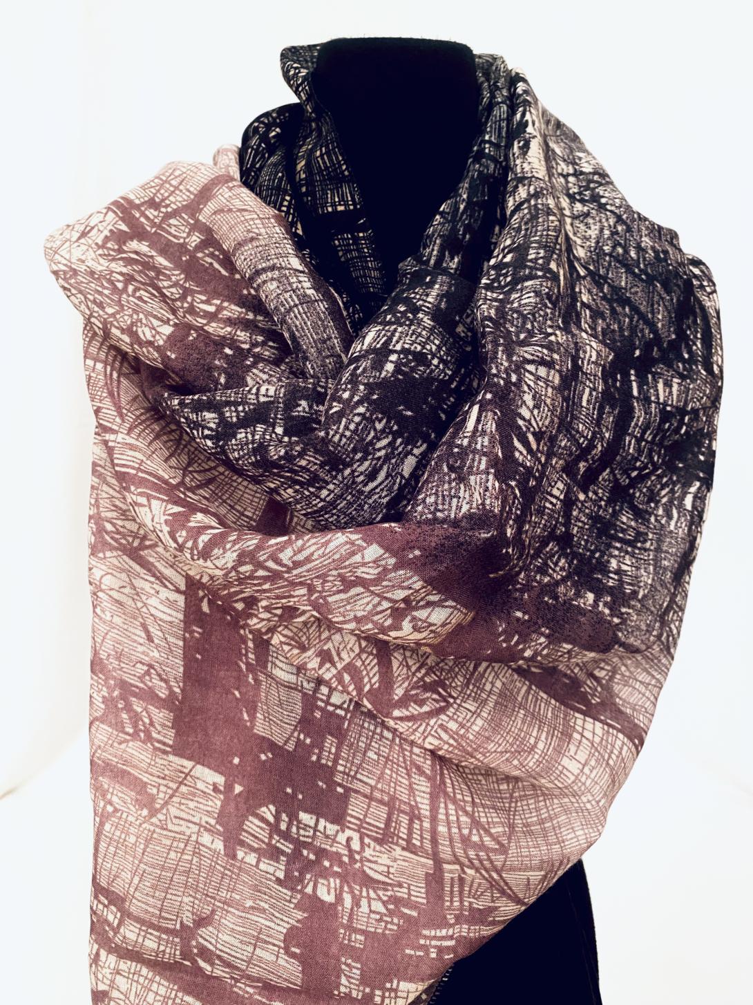 Абстрактный принт на палантине делает его уникальным и стильным аксессуаром.